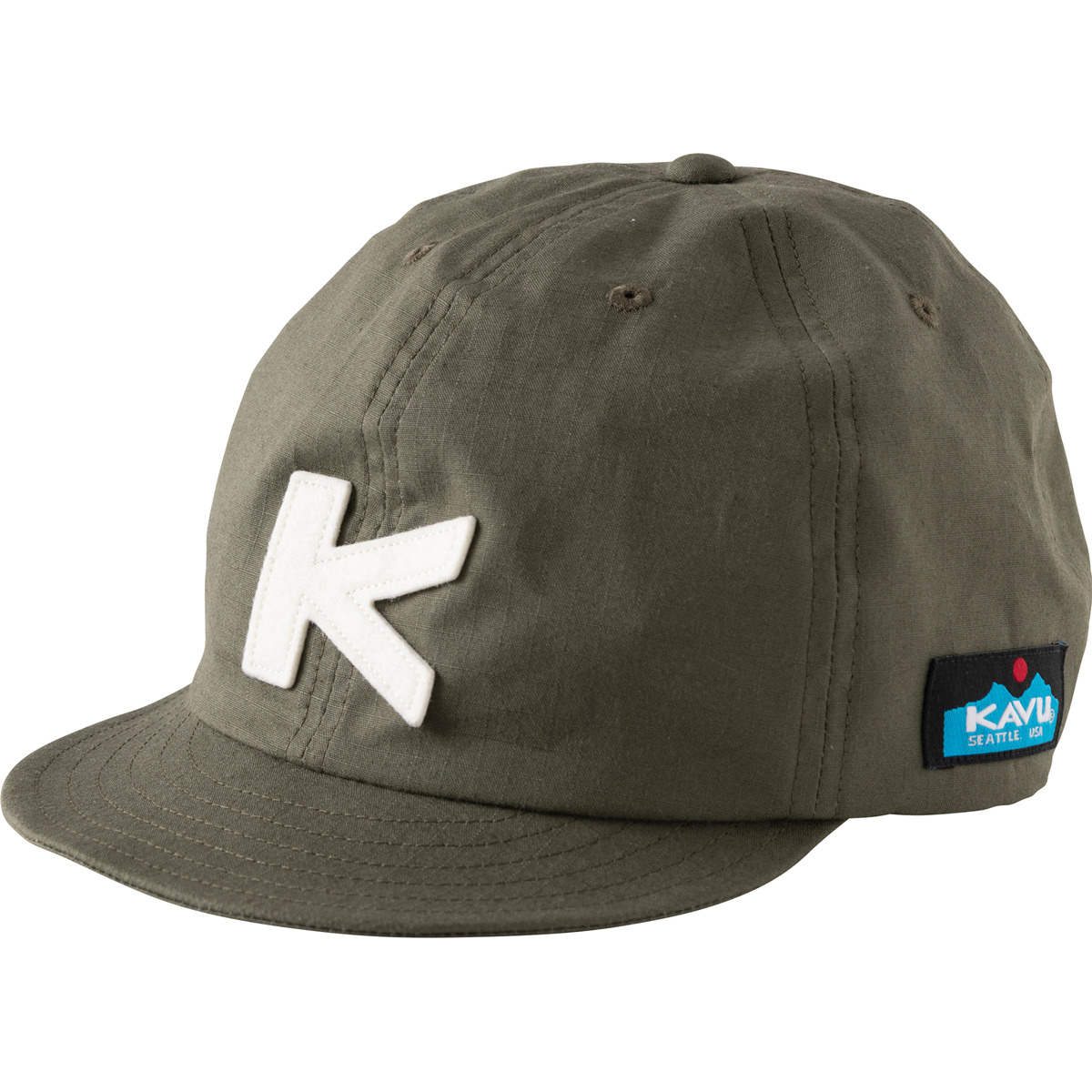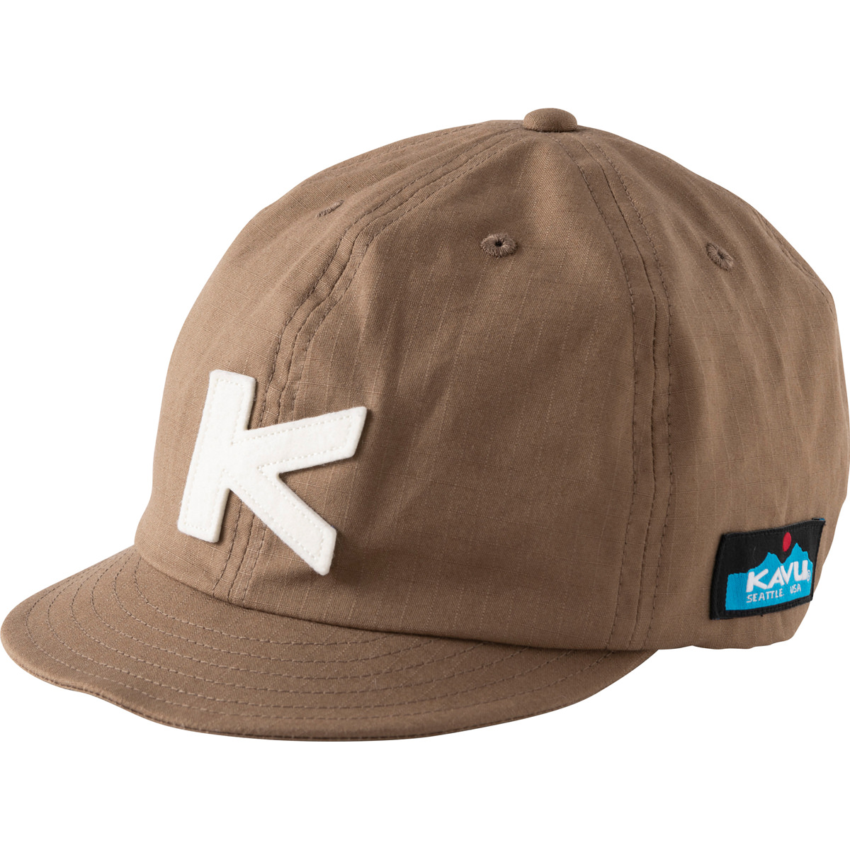 KAVU カブー リップストップベースボールキャップはコットンリップストップを使用したベースボールキャップです。 定番のベースボールキャップに、薄くて軽く、耐久性に優れたリップストップを採用しました。つばが短い往年のメジャーリーグを思わせるクラシックなデザインです。KAVUのKのワッペンがよりベースボールらしさを醸し出しています。被り心地は少し深め、つばが短いので自転車などの運転でも風の抵抗を受けにくく、思いつく様々なシーンできっとあなたの相棒になってくれることでしょう!