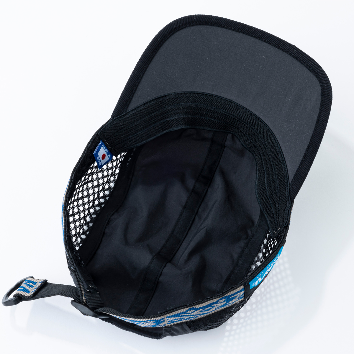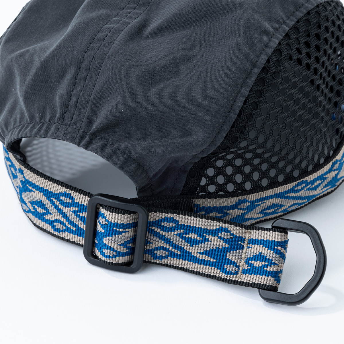 キャプンソフトビルキャップはつば部分に柔らかい素材し、まるめてポケット等に入れて持ち運べるパッカブルキャップです。 サイド部分にはメッシュ素材を使用しているので通気性抜群でちょっとしたアクティビティからデイリーユースでも活躍します。また、縁に付いたアジャスタブルウェビングテープによりサイズ調節ができ、このウェイビングシステムにより強風でもしっかりフィットさせて、脱げにくくできます。ツバの裏側部分は黒一色で統一され、水面からの日光の照り返しを防いでくれます。