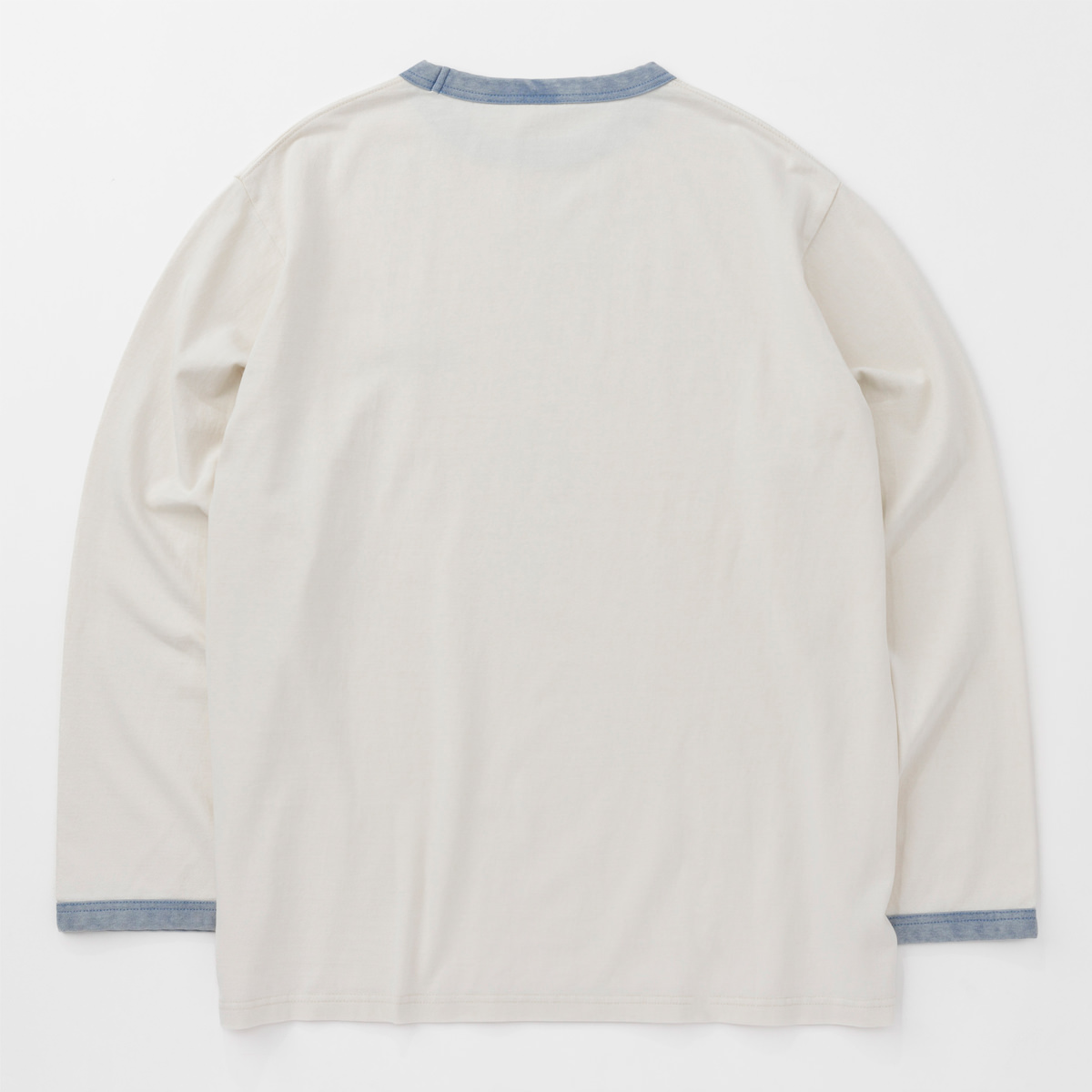 Used 加工 16/- の糸でボディを作成したボディに特殊なブリーチ加工を施したリンガーTeeです。 プリントの版も最初からひび割れた版で作成し着古したような風合いに仕上げています。