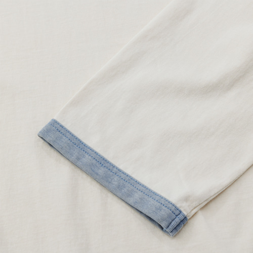 16/- の糸でボディを作成しピグメント加工を施しています。染み込みプリントですので洗い込むことでプリントが沈みこむように馴染んできいきます。