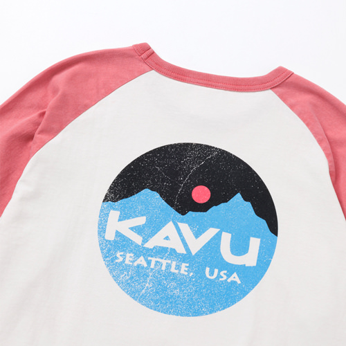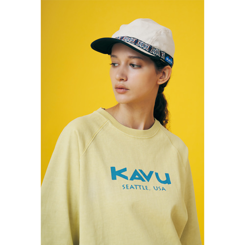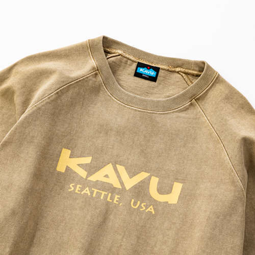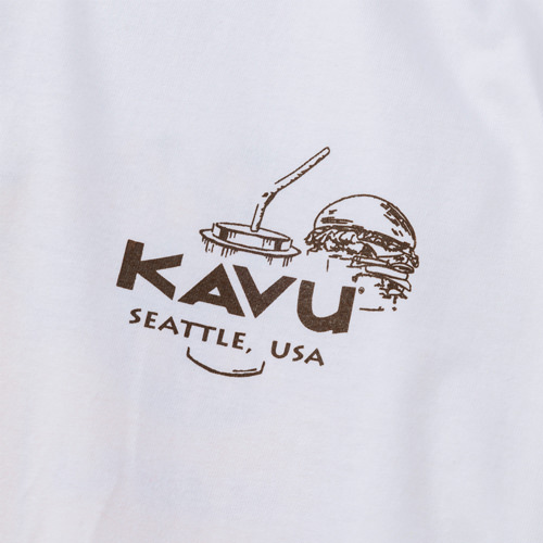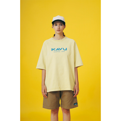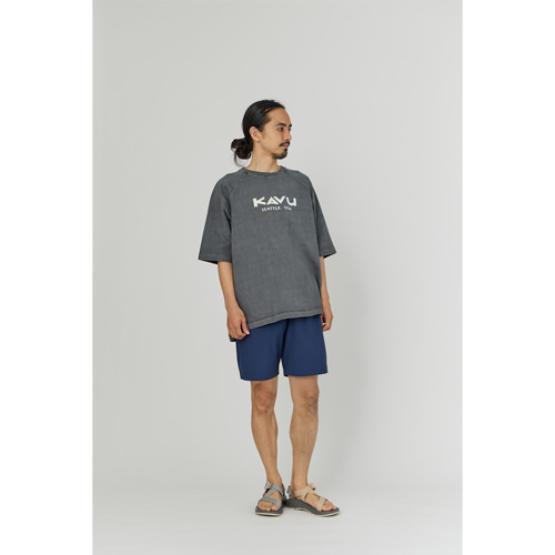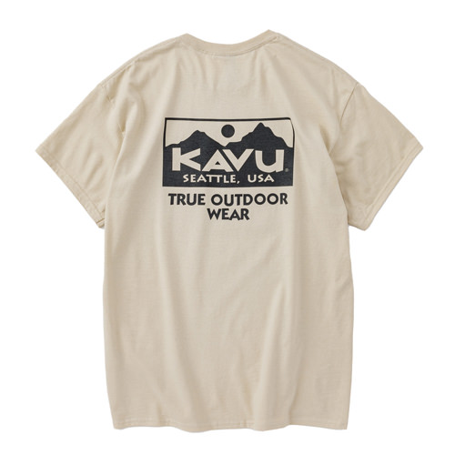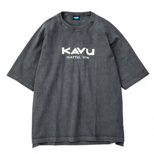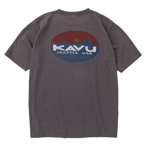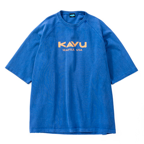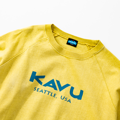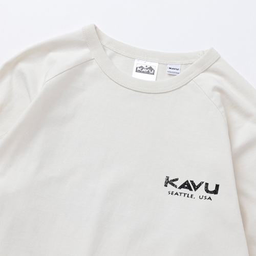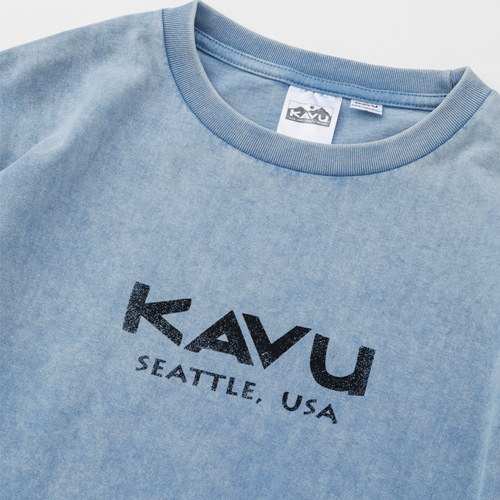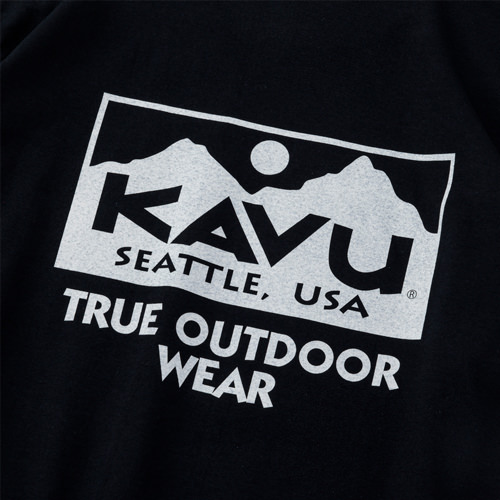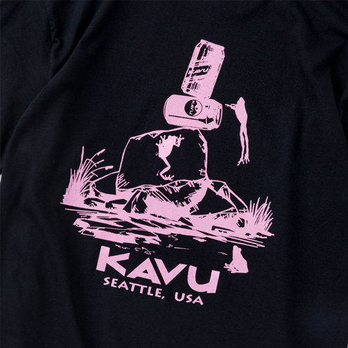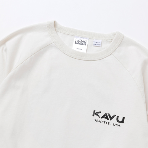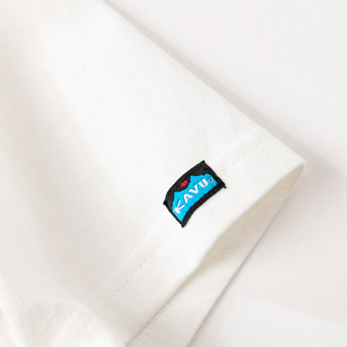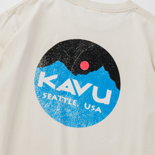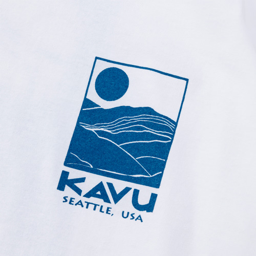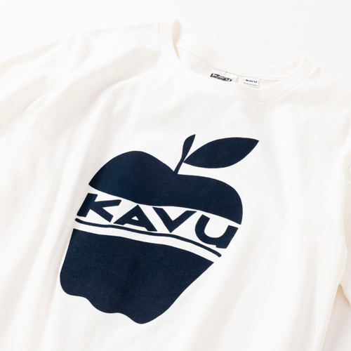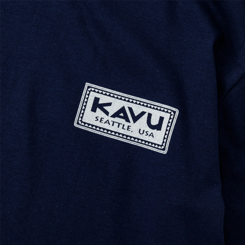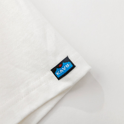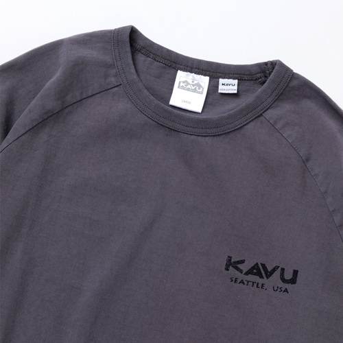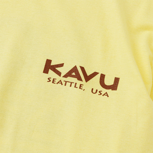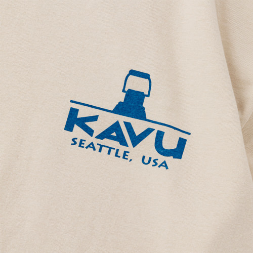 毎シーズン展開しているハンドプリントのシリーズですが、国内で1点1点手刷りで作成されています。 プリントに使用するインクもUSAから取り寄せたものを使用しています。 シンプルなKAVU ロゴを2版でプリントしています。