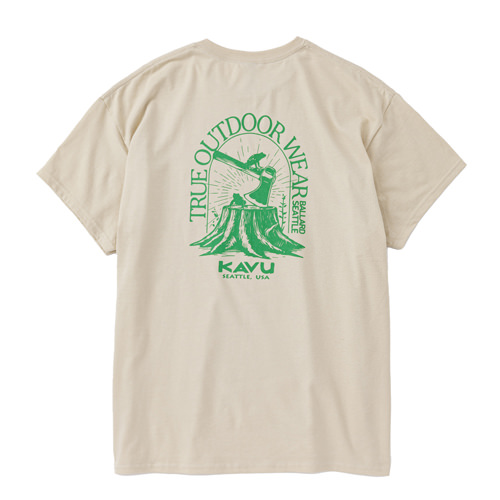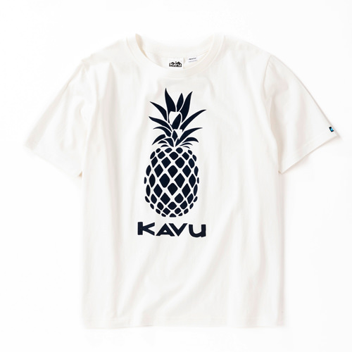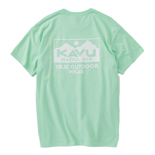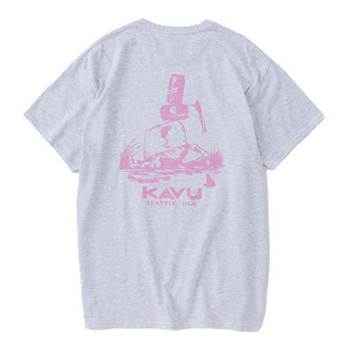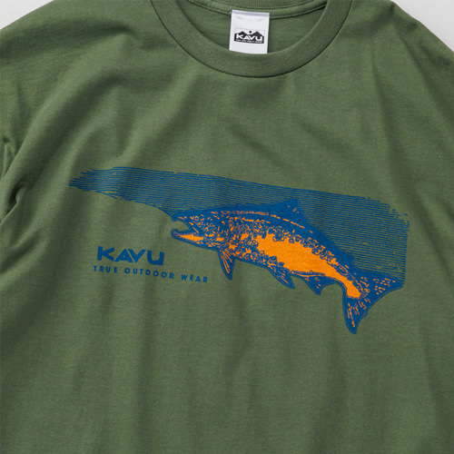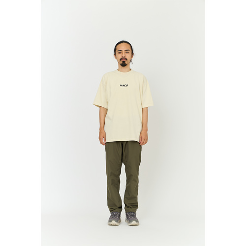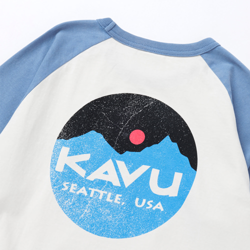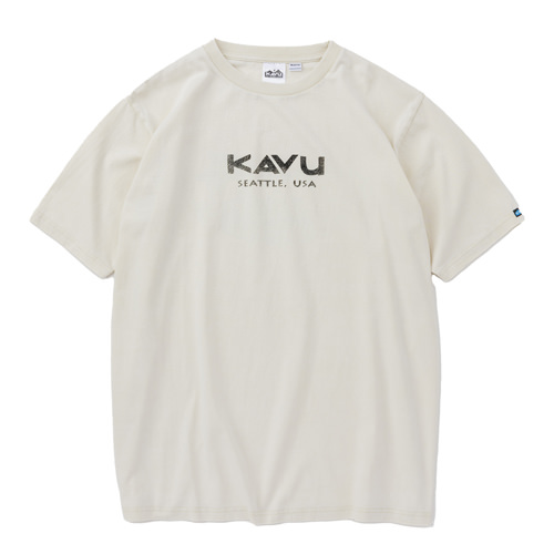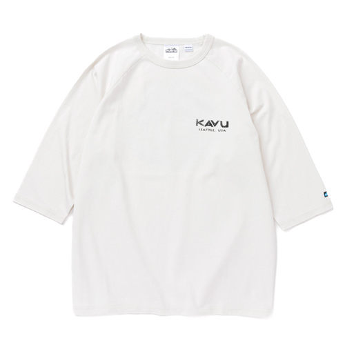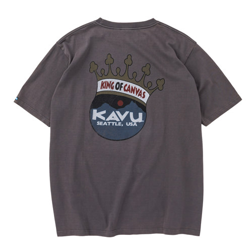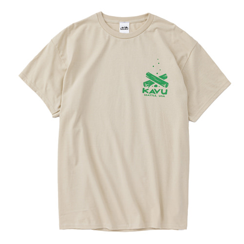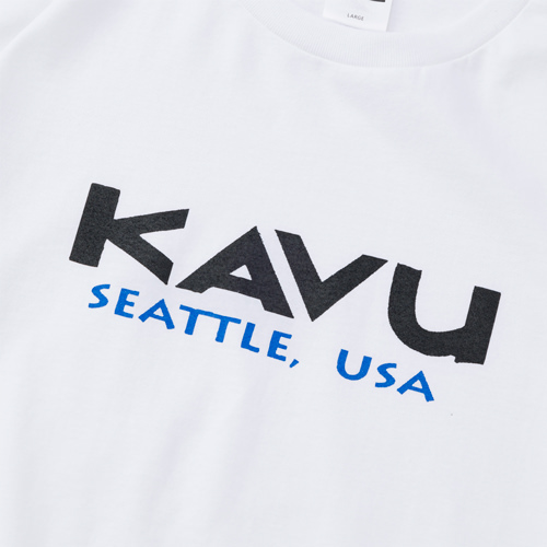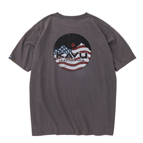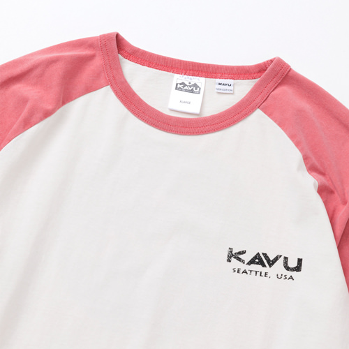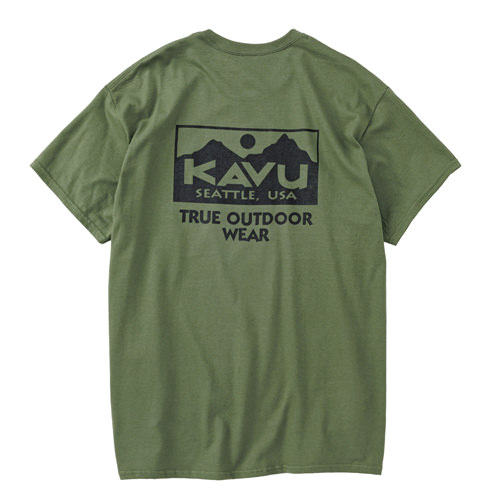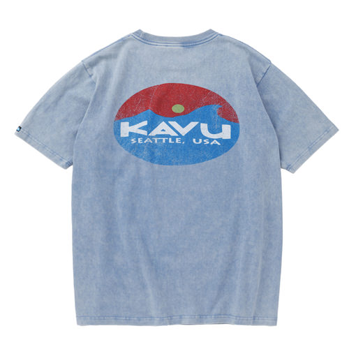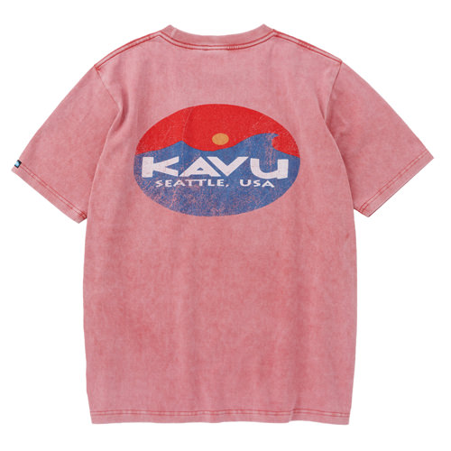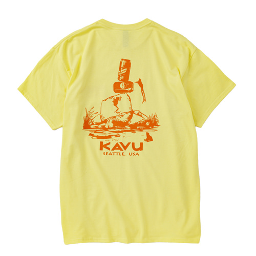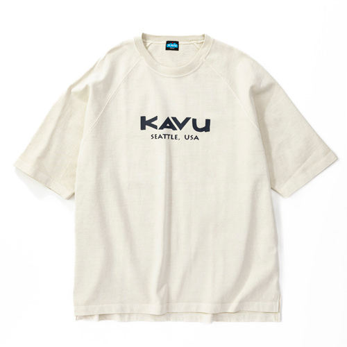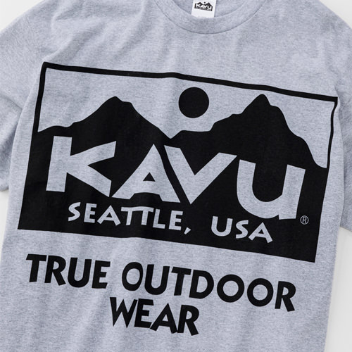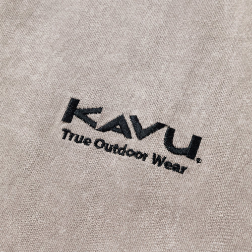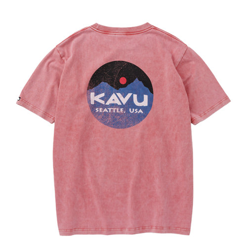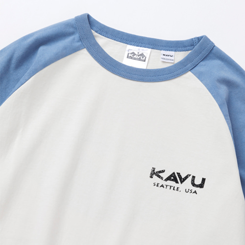 毎シーズン展開しているハンドプリントのシリーズですが、国内で1点1点手刷りで作成されています。 プリントに使用するインクもUSAから取り寄せたものを使用しています。 シンプルなKAVU ロゴを2版でプリントしています。