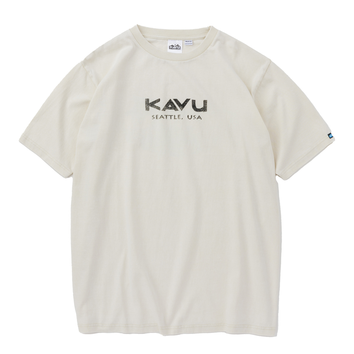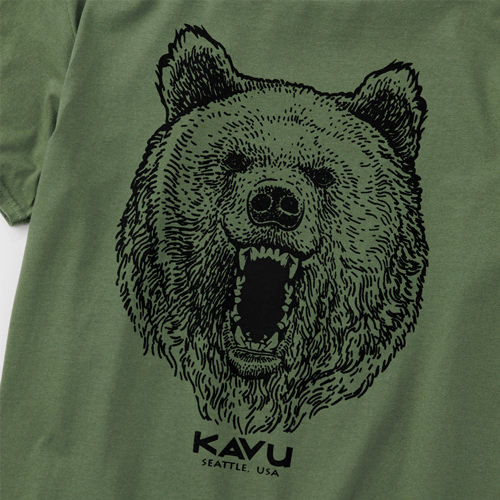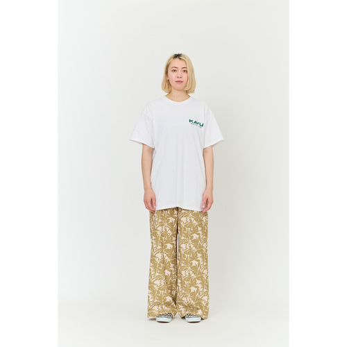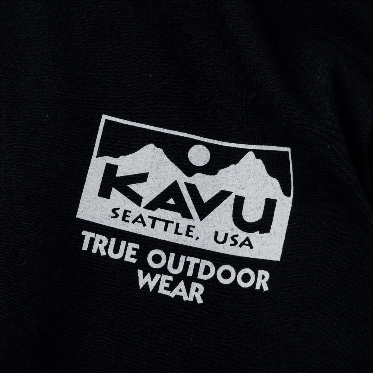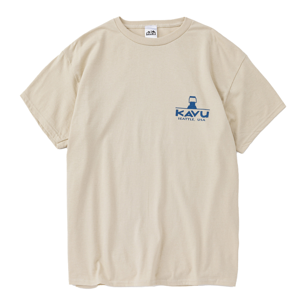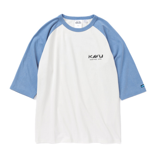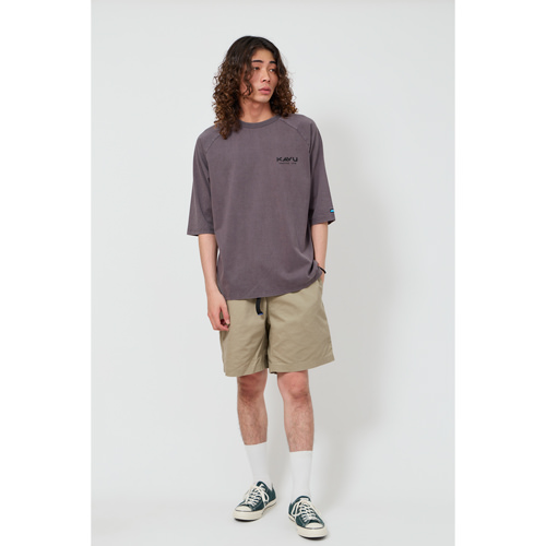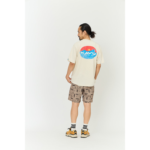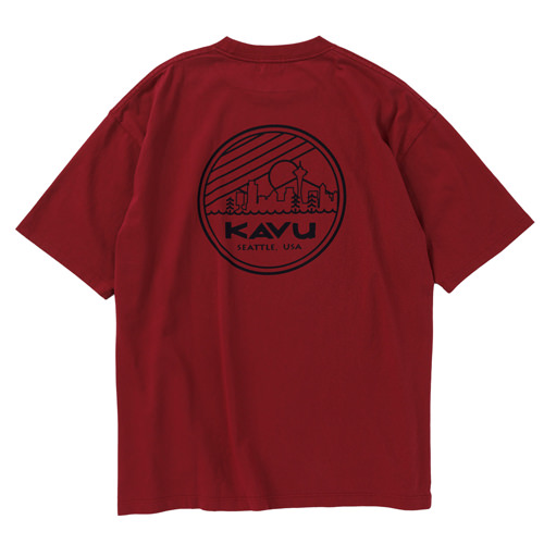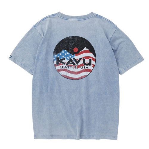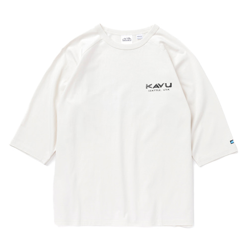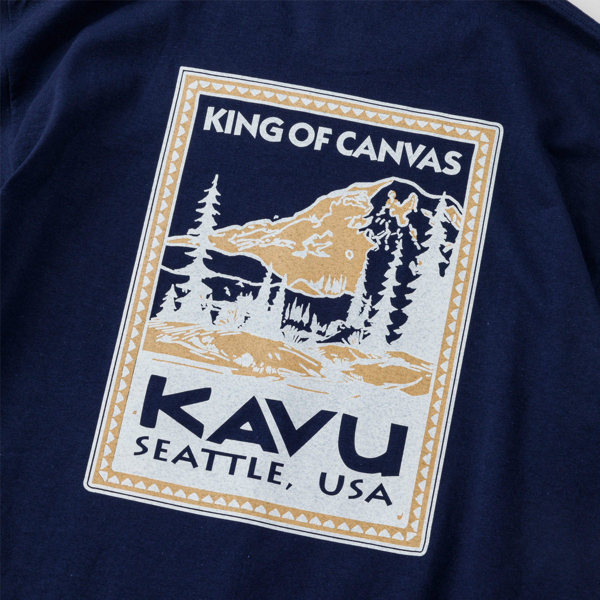 毎シーズン展開しているハンドプリントのシリーズですが、国内で1点1点手刷りで作成されています。 プリントに使用するインクもUSAから取り寄せたものを使用しています。 シンプルなKAVU ロゴを2版でプリントしています。
