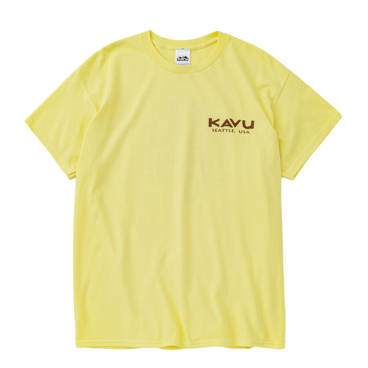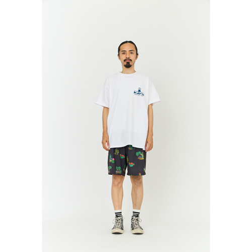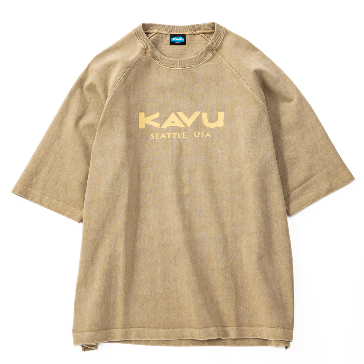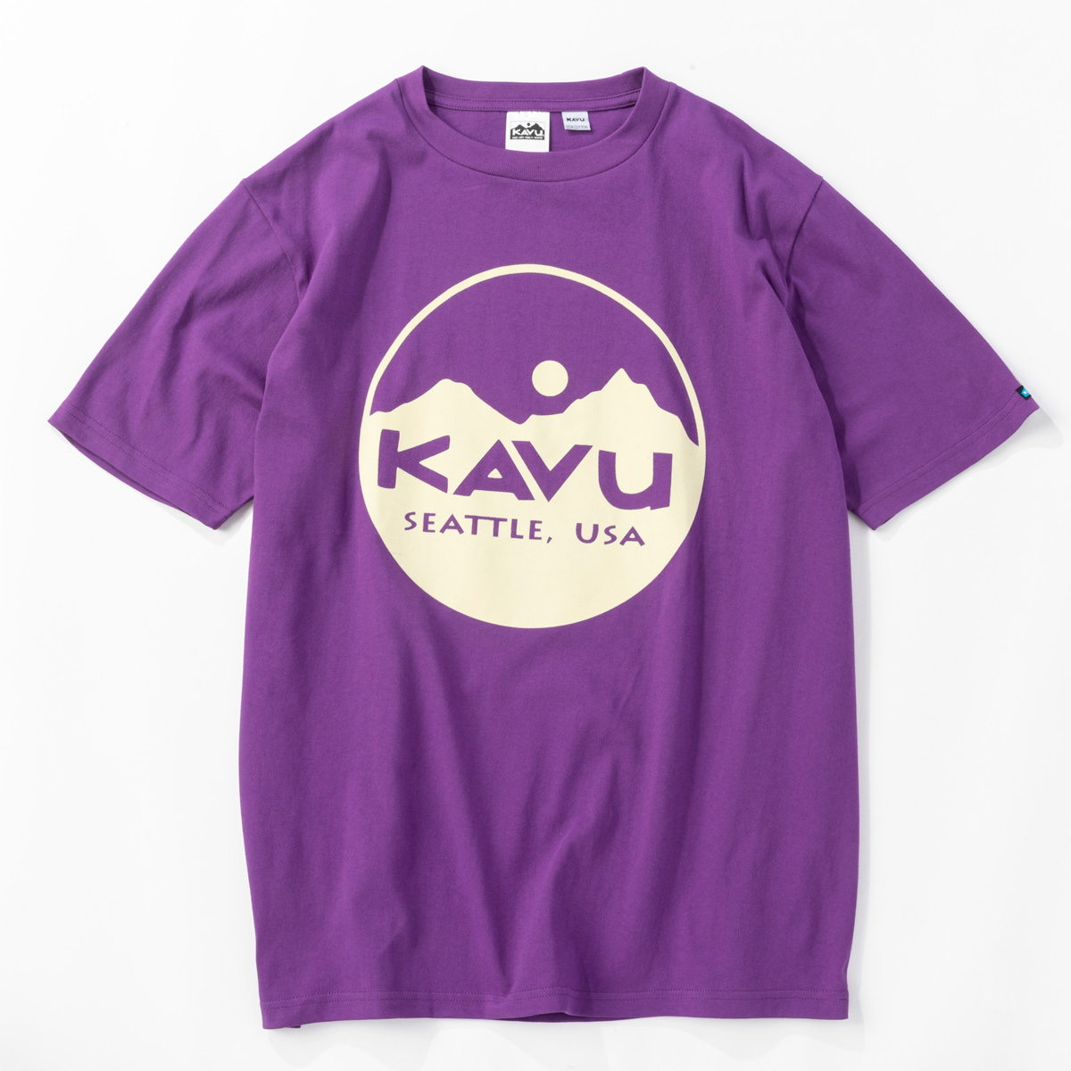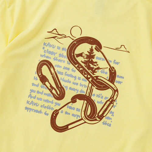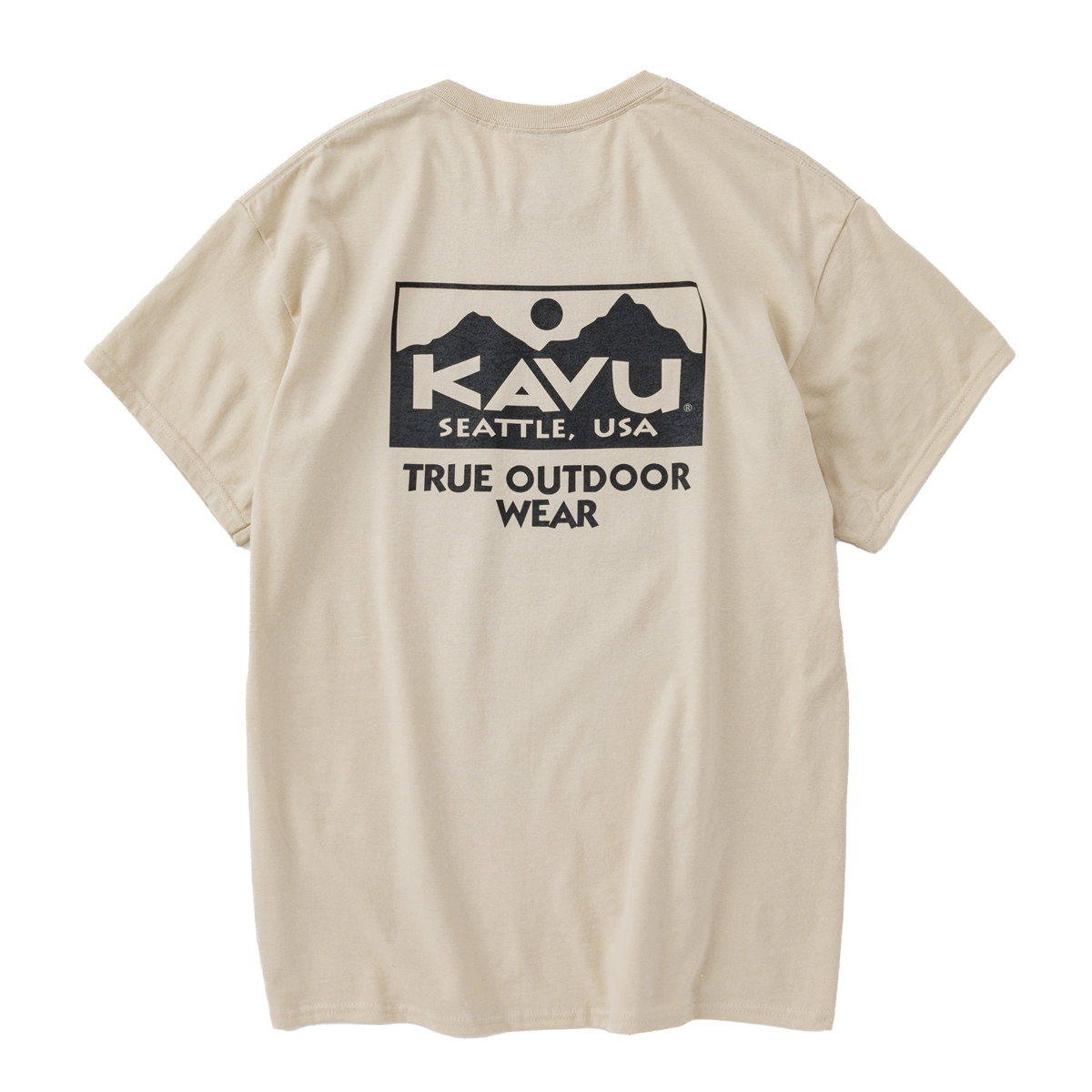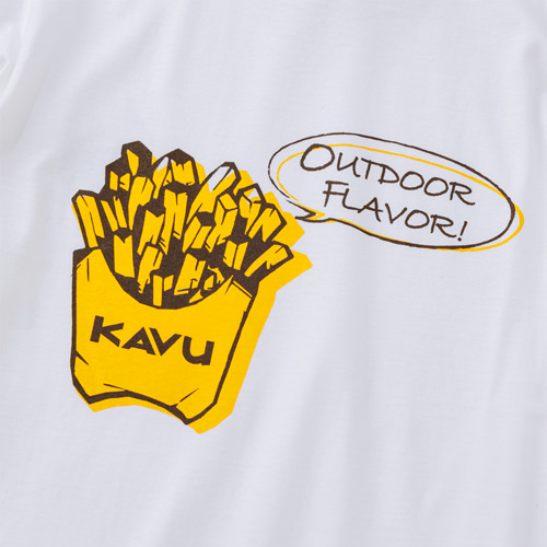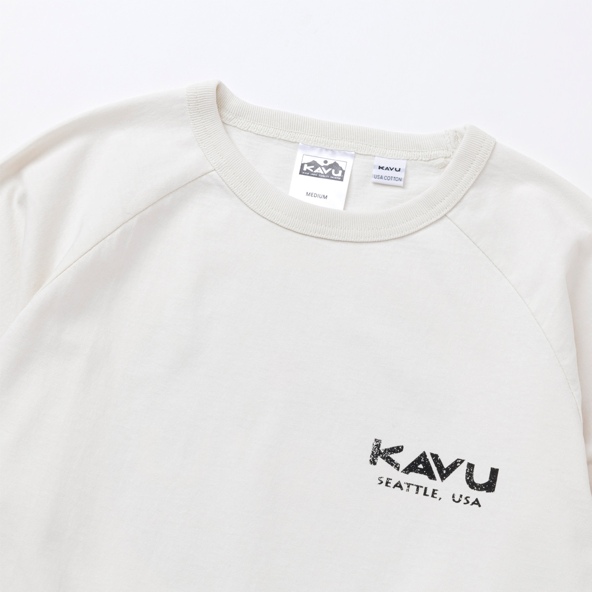 毎シーズン展開しているハンドプリントのシリーズですが、国内で1点1点手刷りで作成されています。 プリントに使用するインクもUSAから取り寄せたものを使用しています。 シンプルなKAVU ロゴを2版でプリントしています。