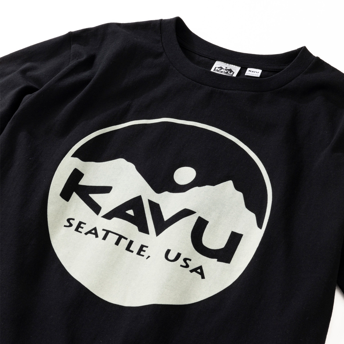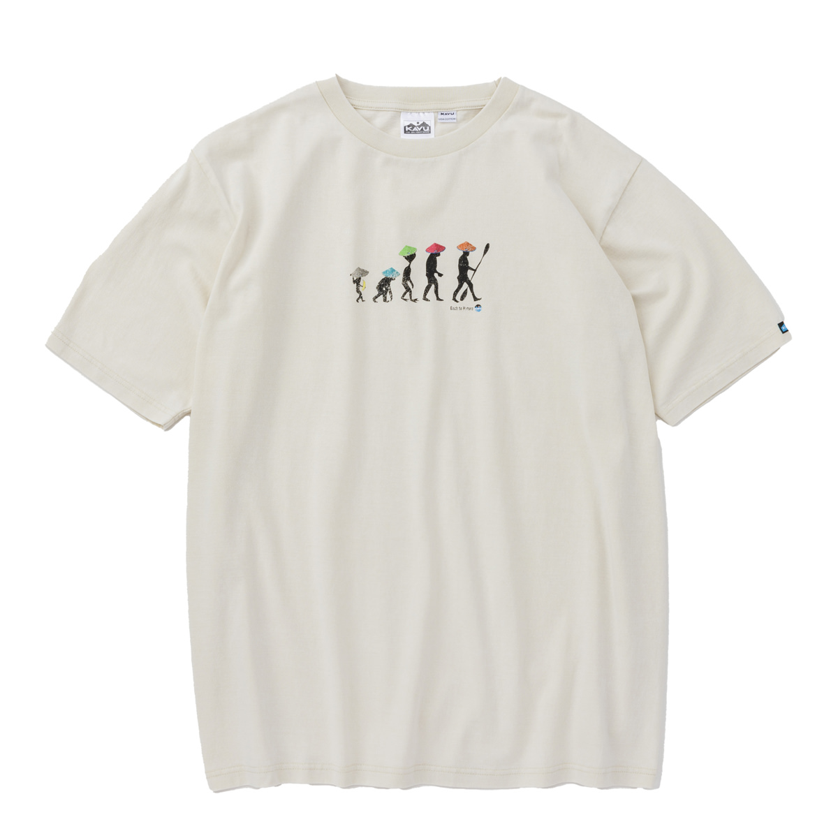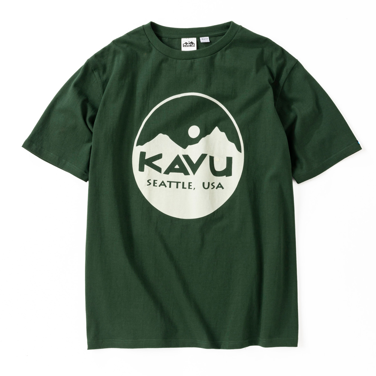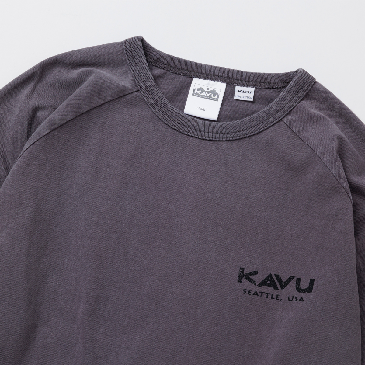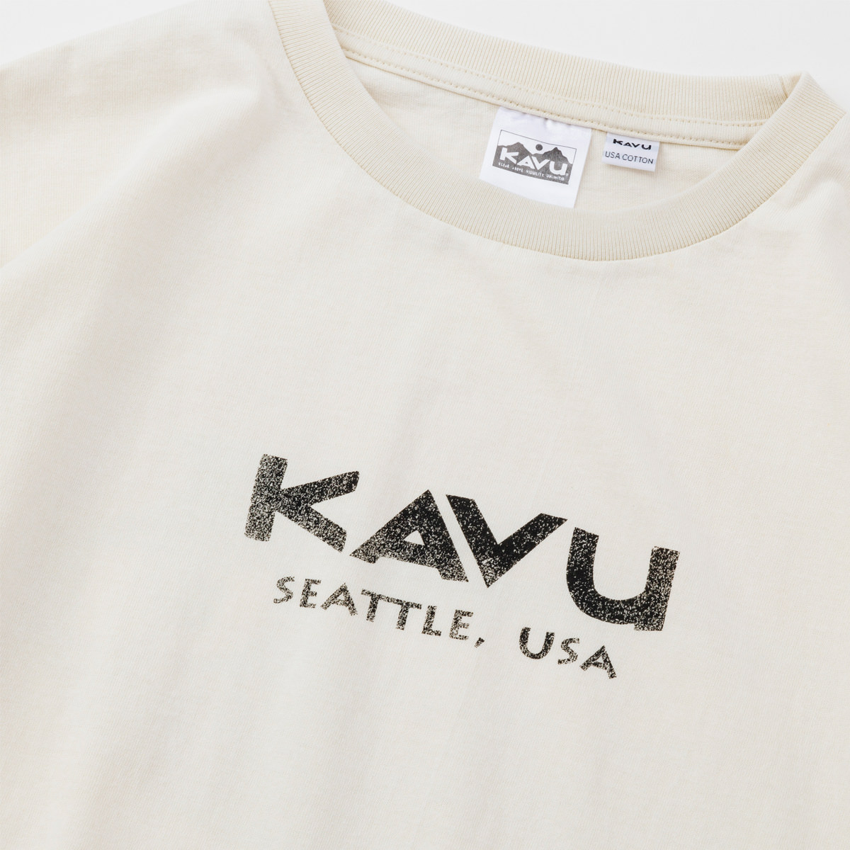 毎シーズン展開しているハンドプリントのシリーズですが、国内で1点1点手刷りで作成されています。 プリントに使用するインクもUSAから取り寄せたものを使用しています。 シンプルなKAVU ロゴを2版でプリントしています。