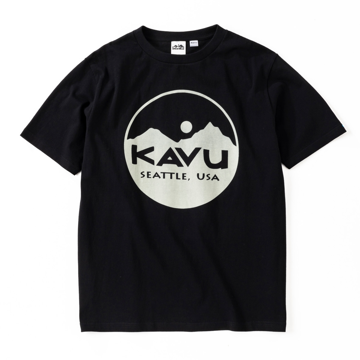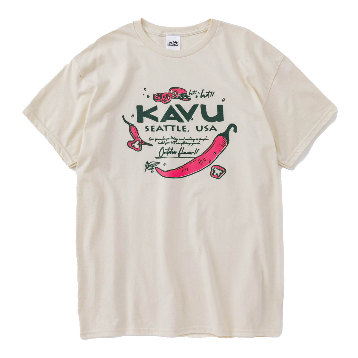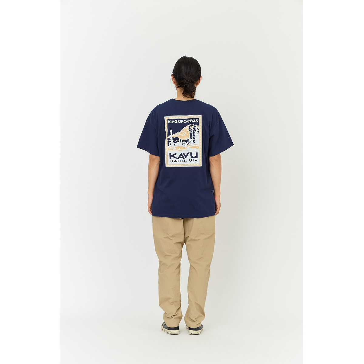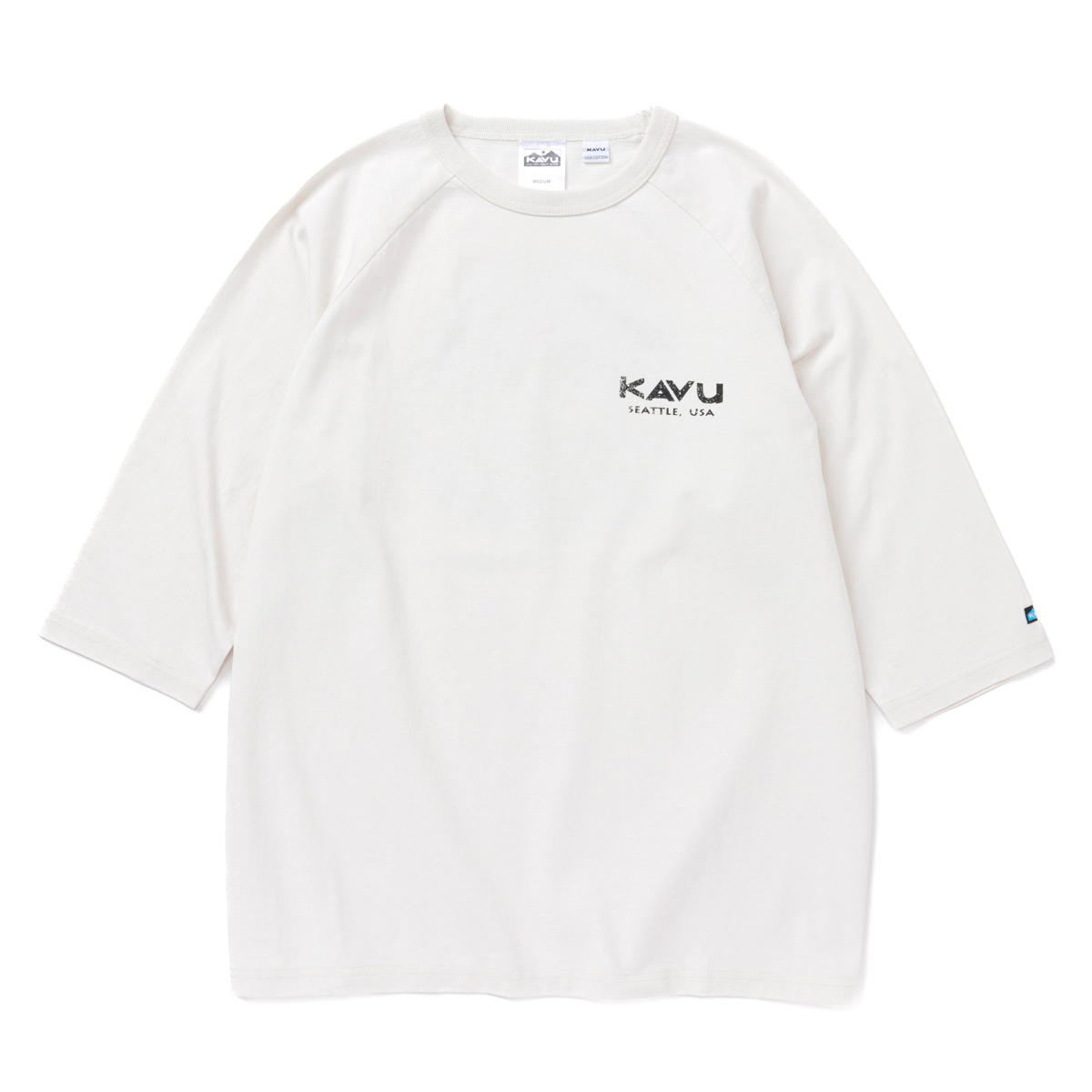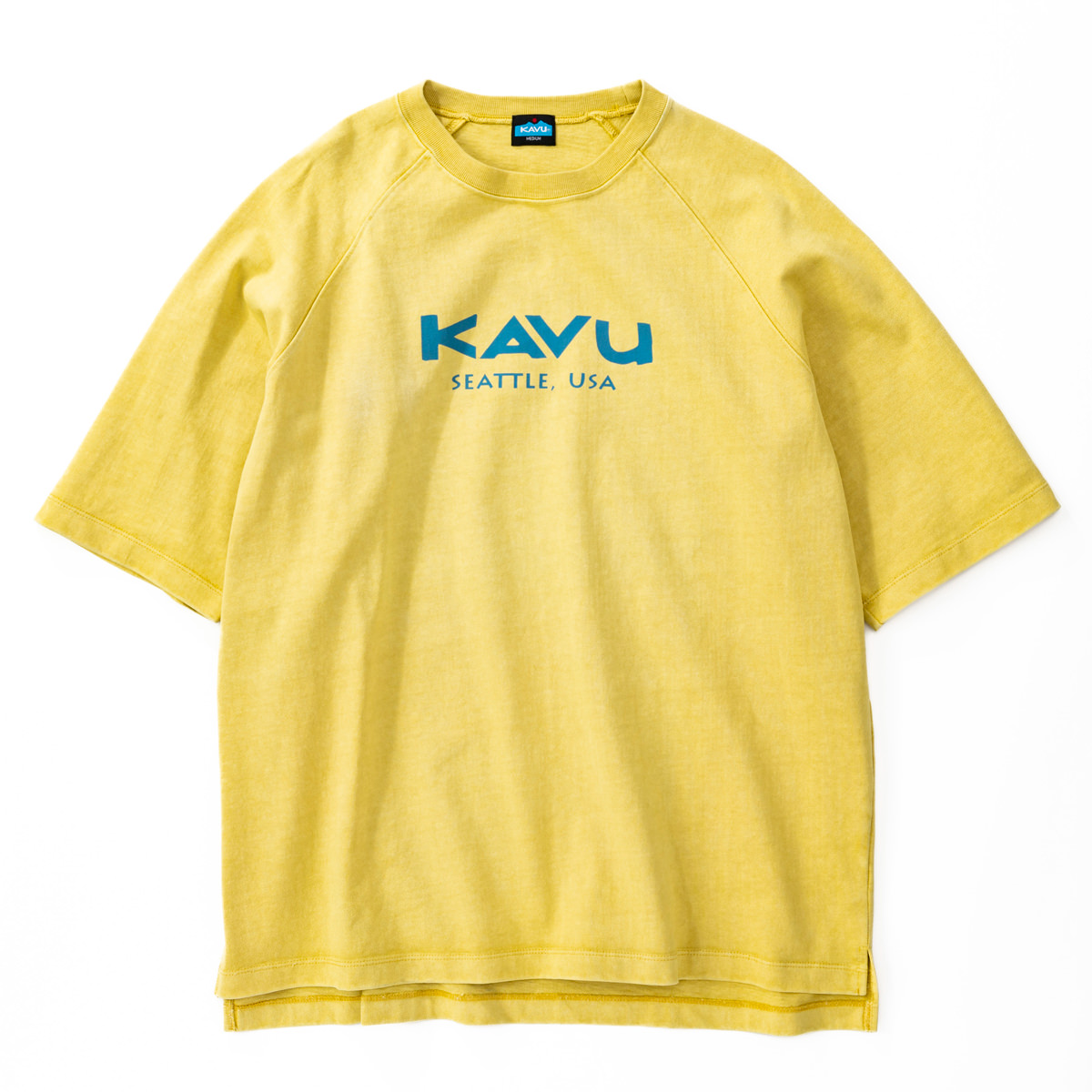毎シーズン展開しているハンドプリントのシリーズですが、国内で1点1点手刷りで作成されています。 プリントに使用するインクもUSAから取り寄せたものを使用しています。 シンプルなKAVU ロゴを2版でプリントしています。