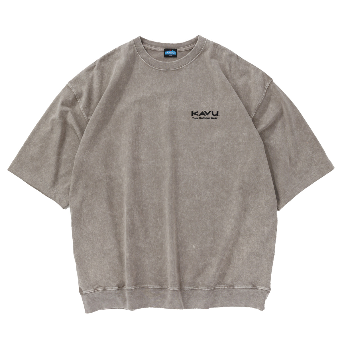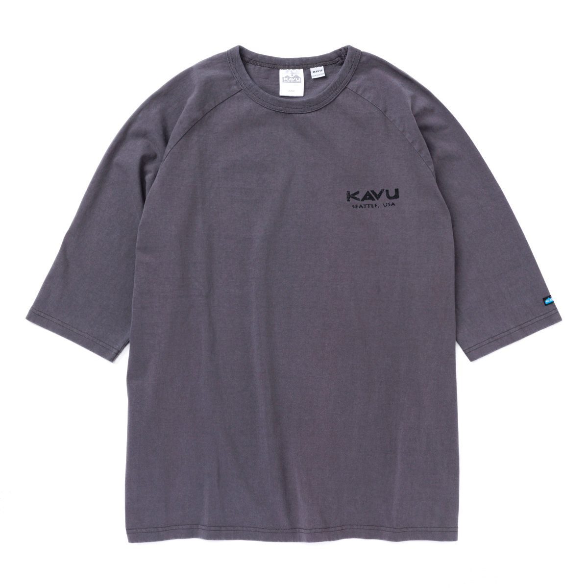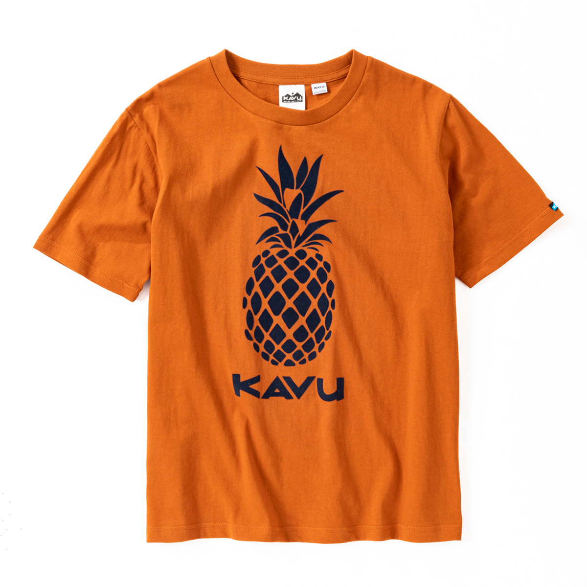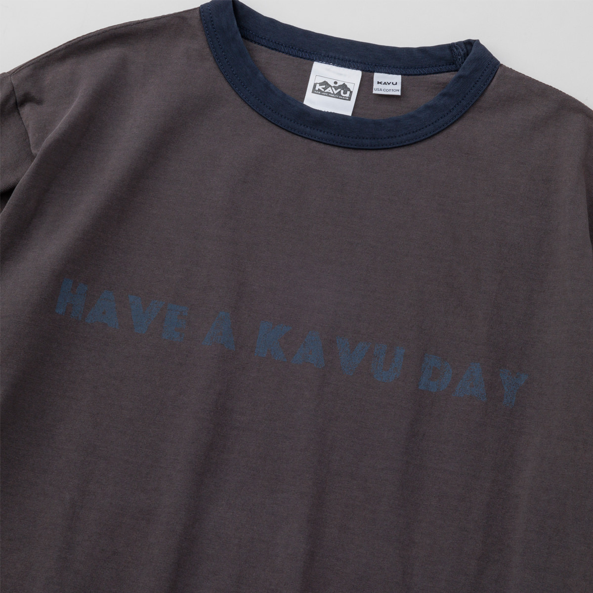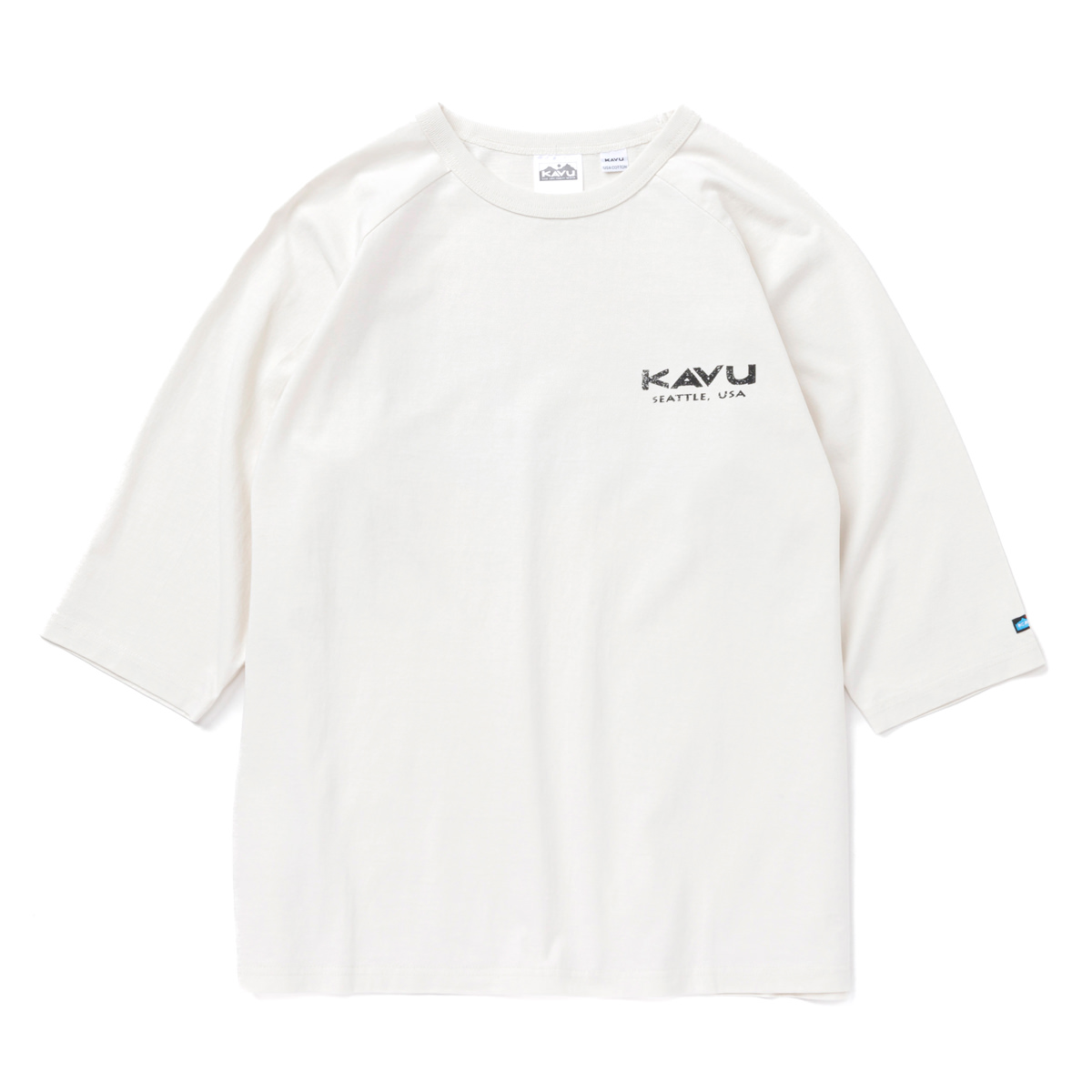 毎シーズン展開しているハンドプリントのシリーズですが、国内で1点1点手刷りで作成されています。 プリントに使用するインクもUSAから取り寄せたものを使用しています。 シンプルなKAVU ロゴを2版でプリントしています。