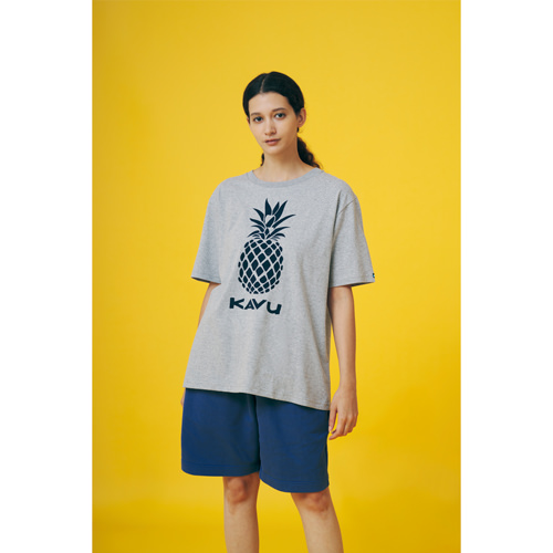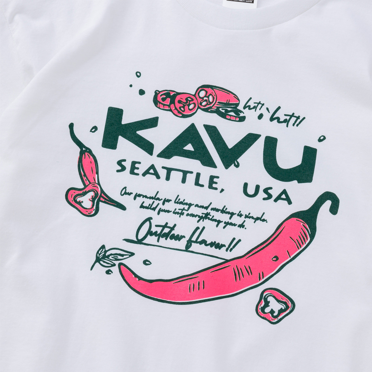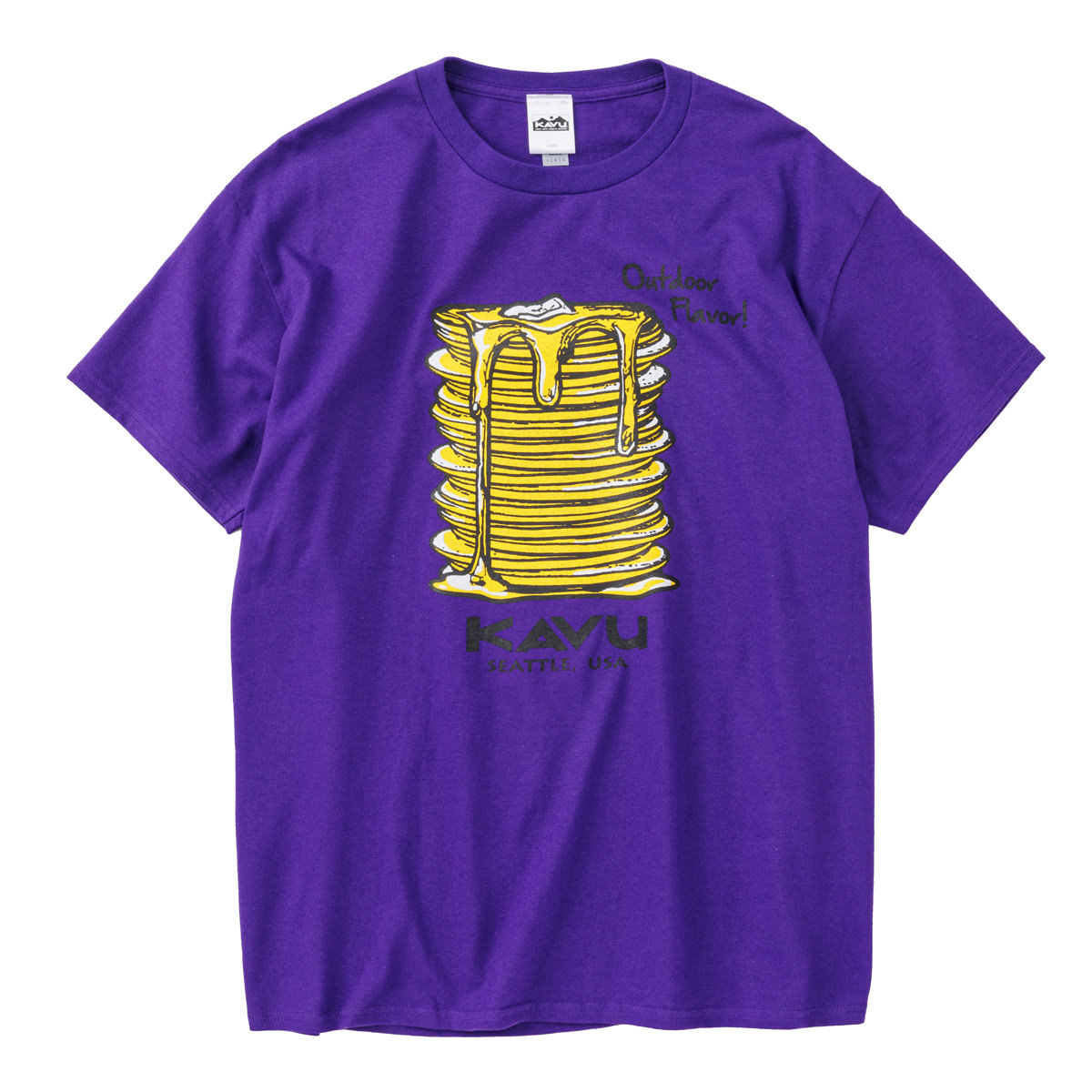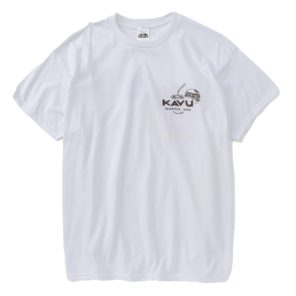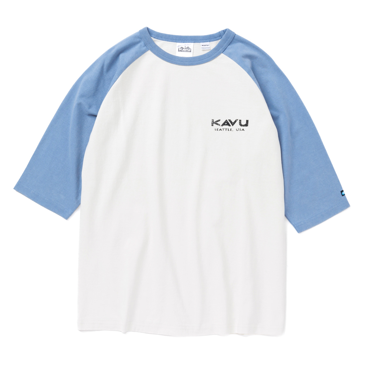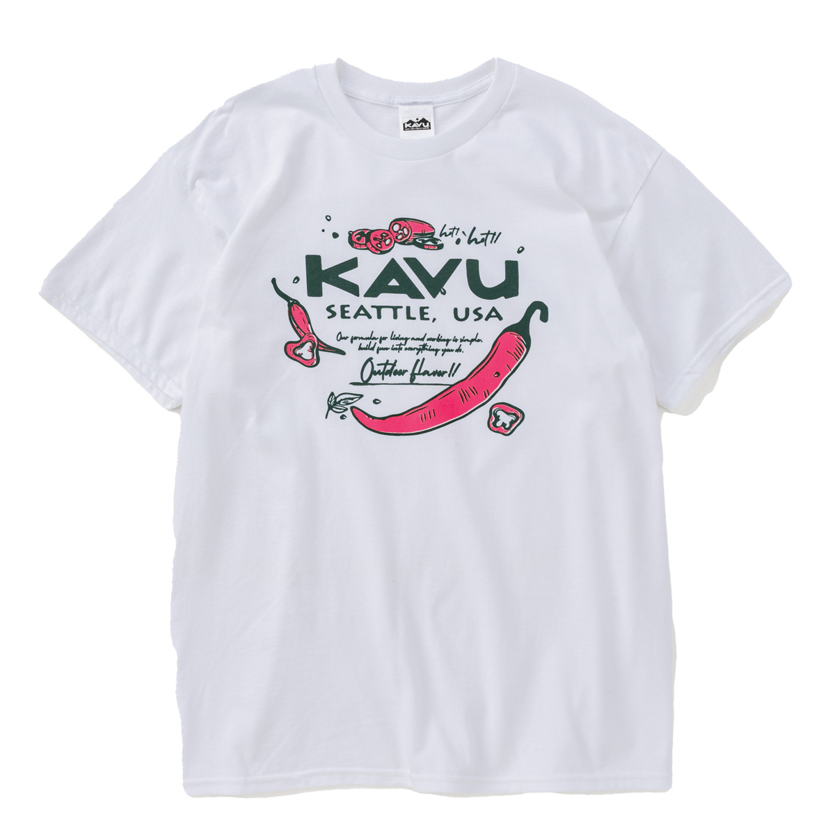 毎シーズン展開しているハンドプリントのシリーズですが、国内で1点1点手刷りで作成されています。 プリントに使用するインクもUSAから取り寄せたものを使用しています。 シンプルなKAVU ロゴを2版でプリントしています。