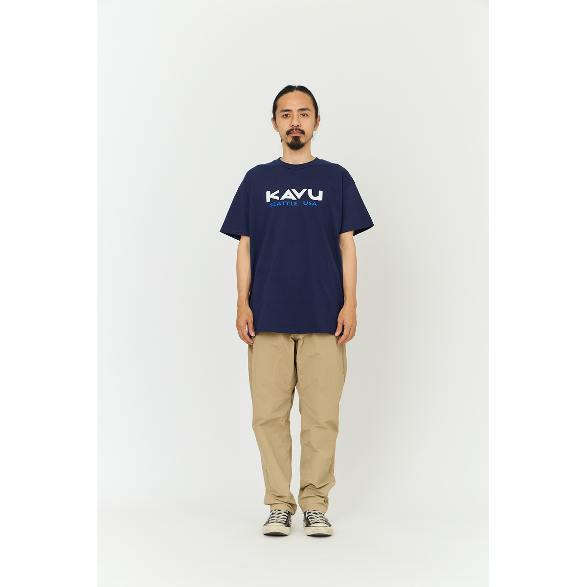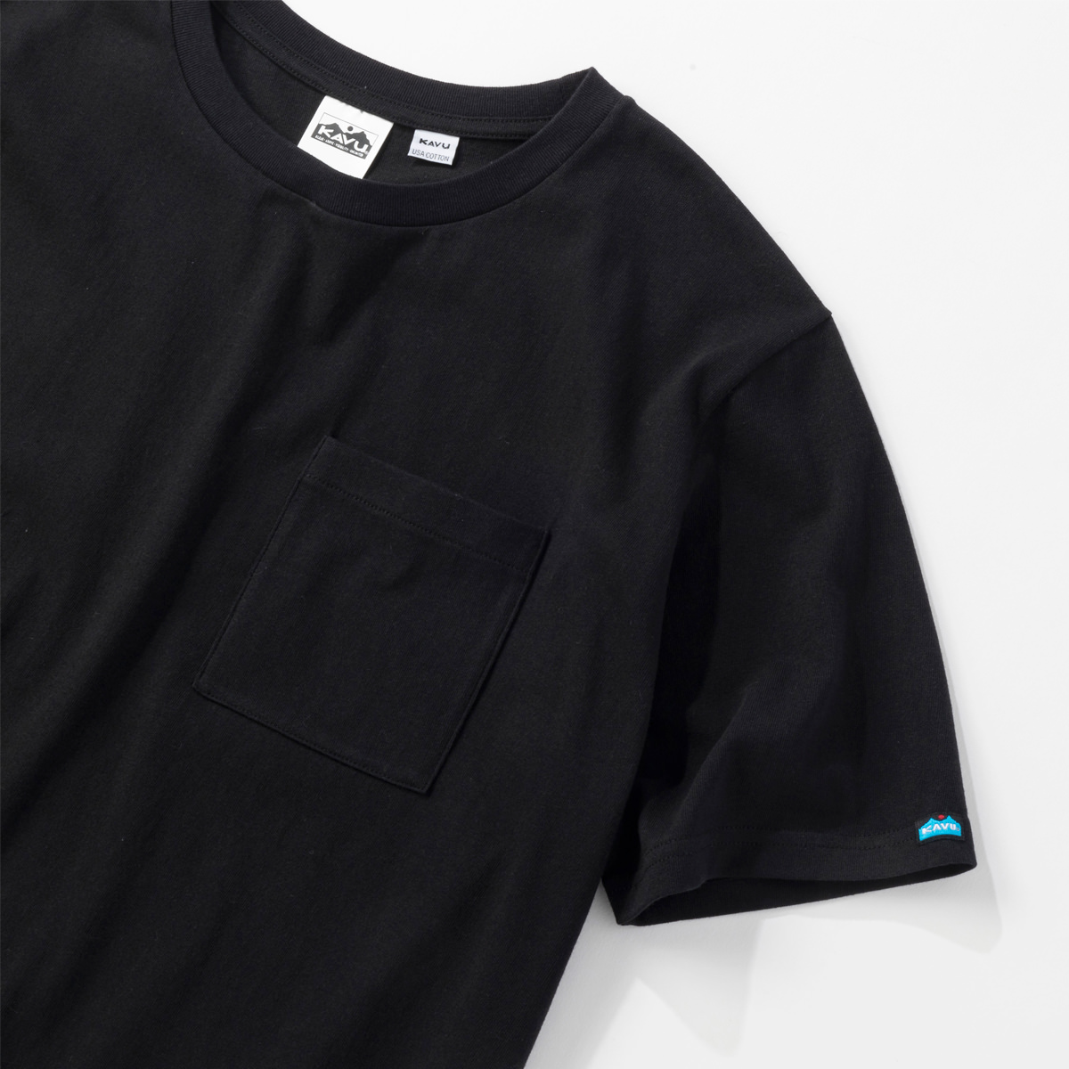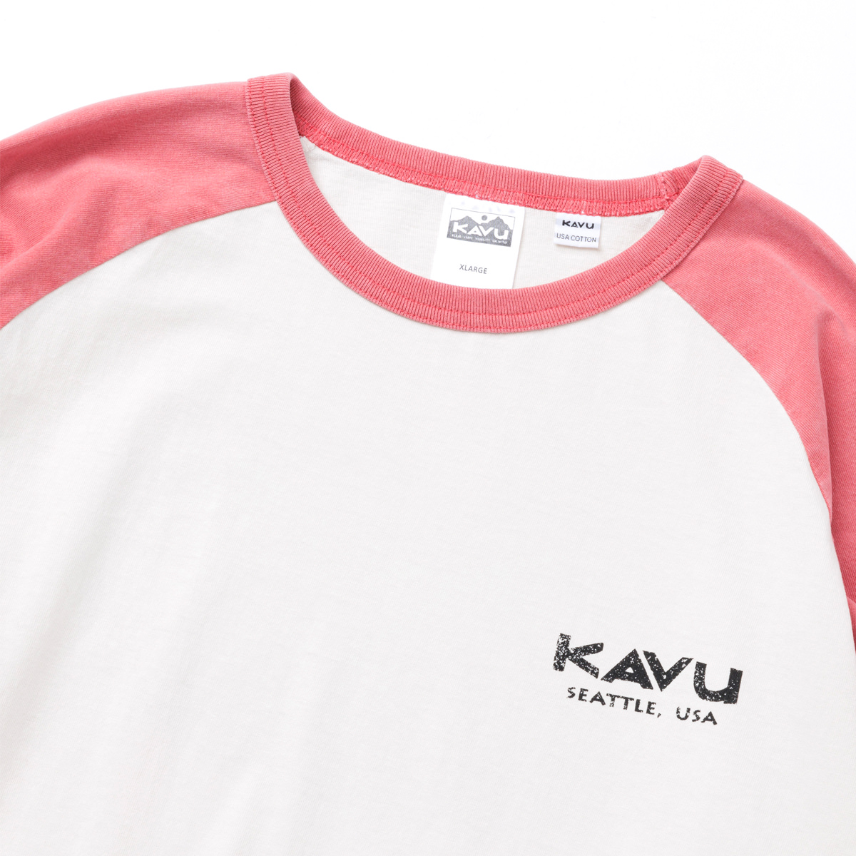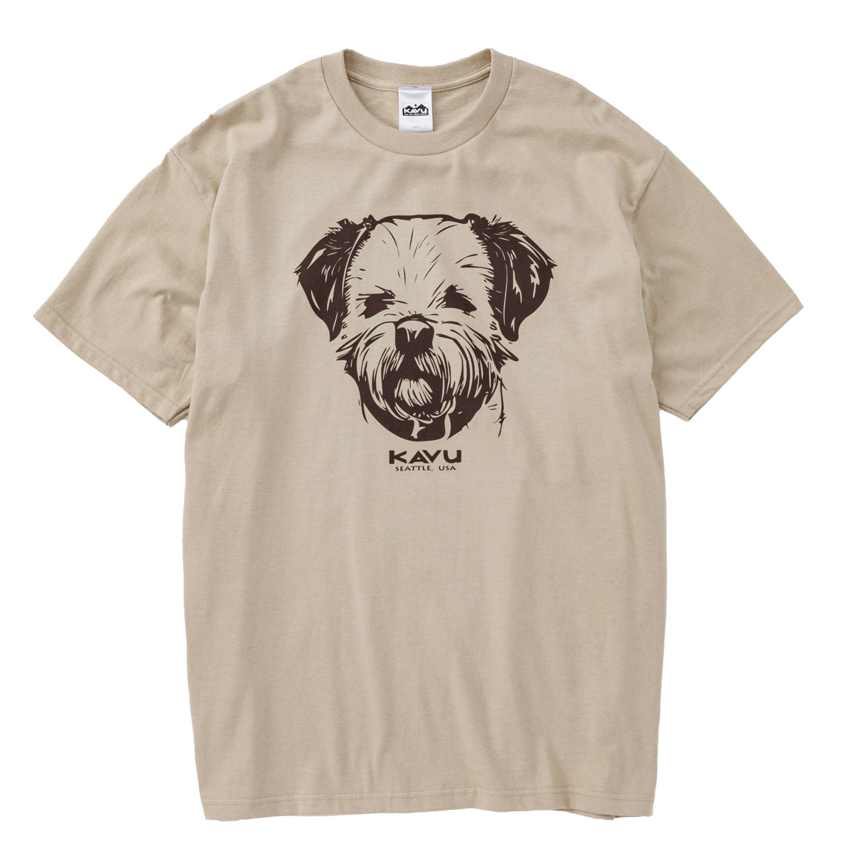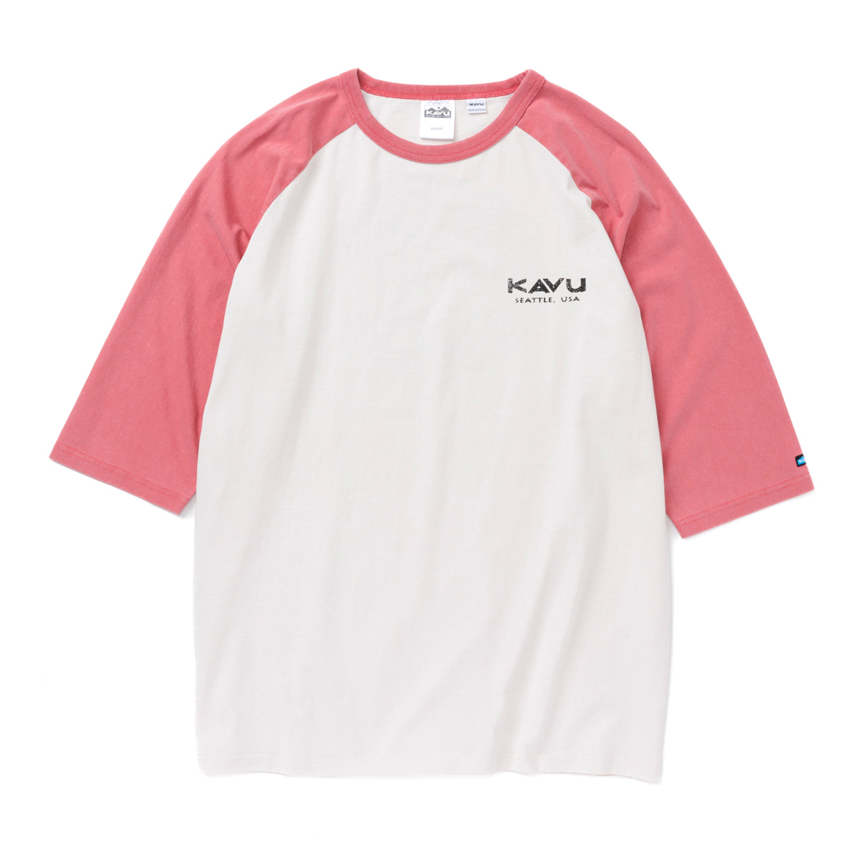 毎シーズン展開しているハンドプリントのシリーズですが、国内で1点1点手刷りで作成されています。 プリントに使用するインクもUSAから取り寄せたものを使用しています。 シンプルなKAVU ロゴを2版でプリントしています。