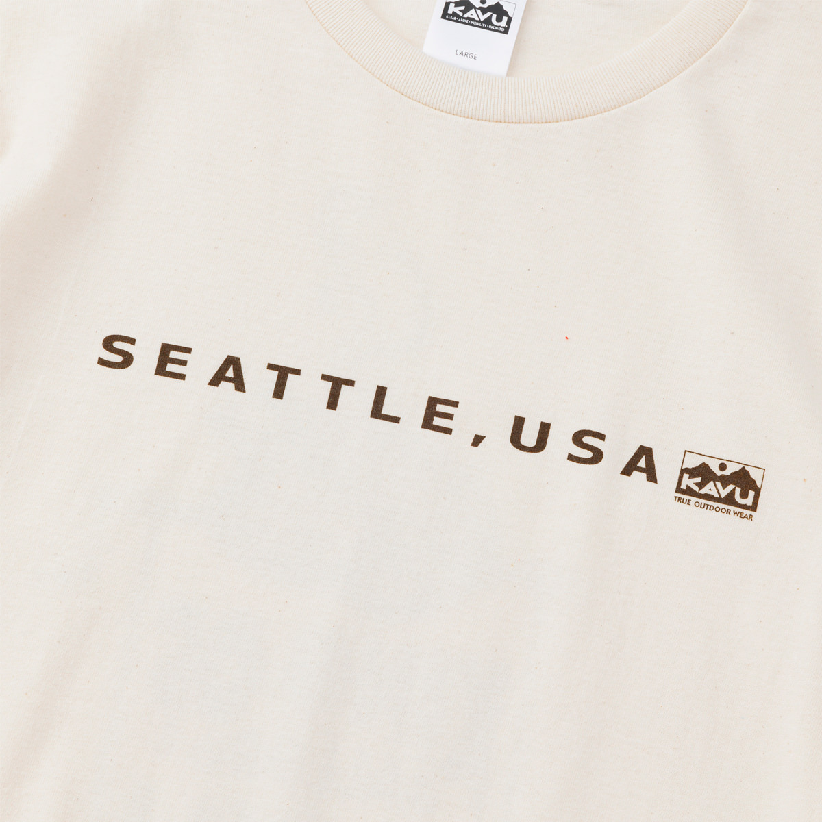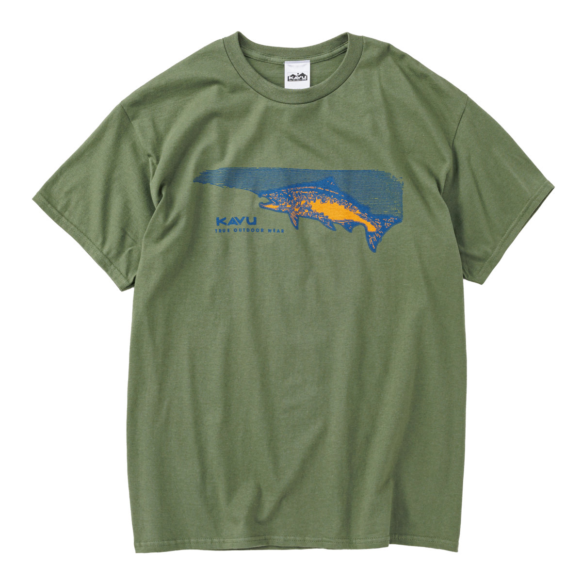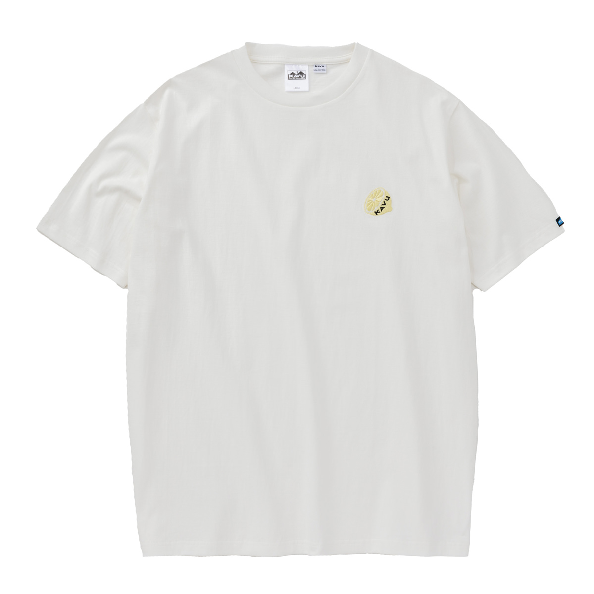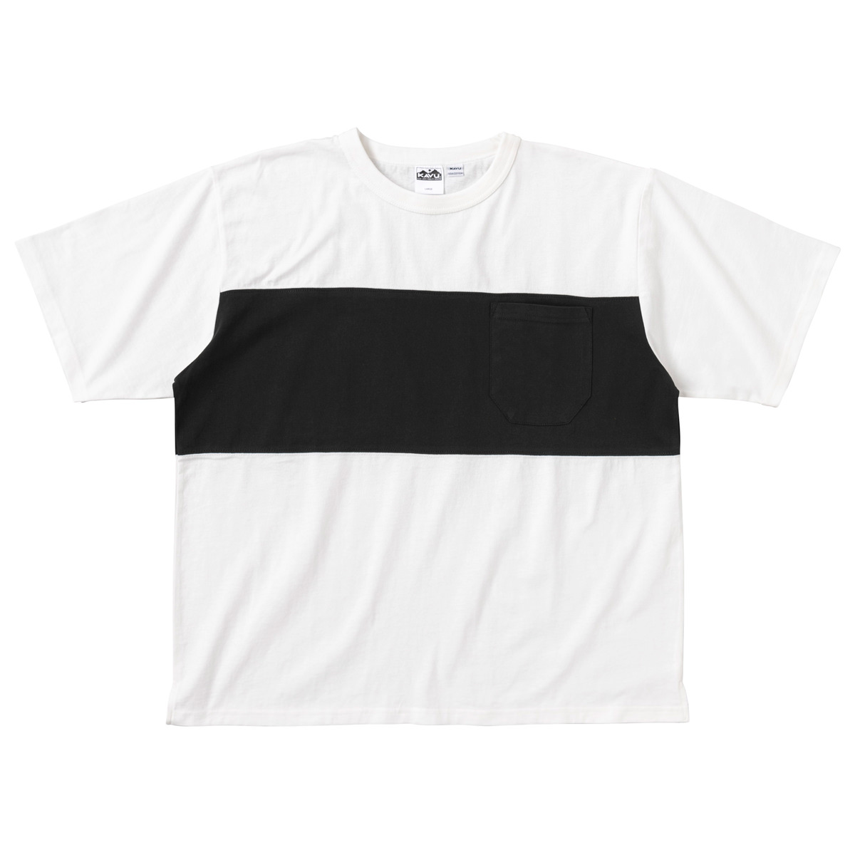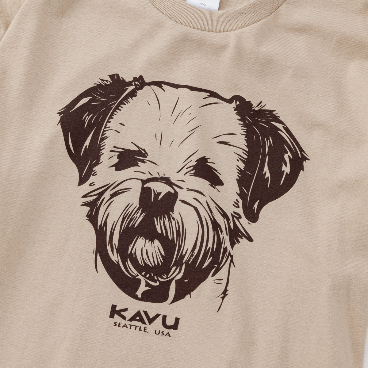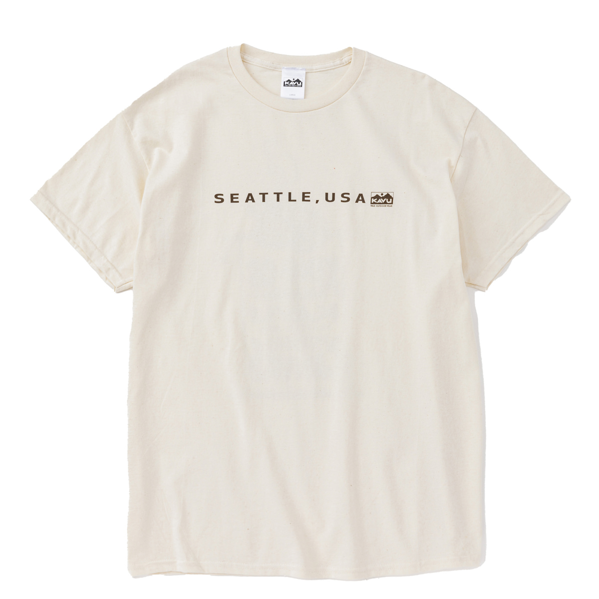 毎シーズン展開しているハンドプリントのシリーズですが、国内で1点1点手刷りで作成されています。 プリントに使用するインクもUSAから取り寄せたものを使用しています。 シンプルなKAVU ロゴを2版でプリントしています。