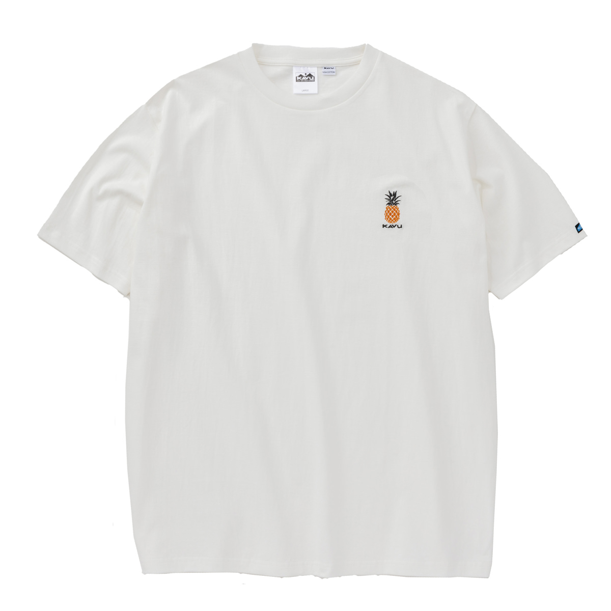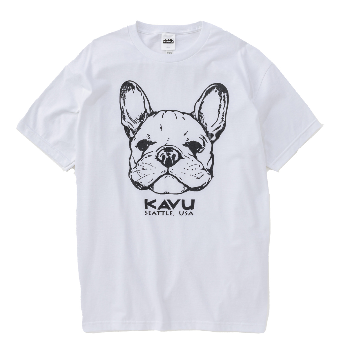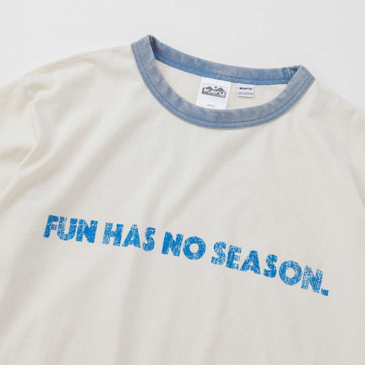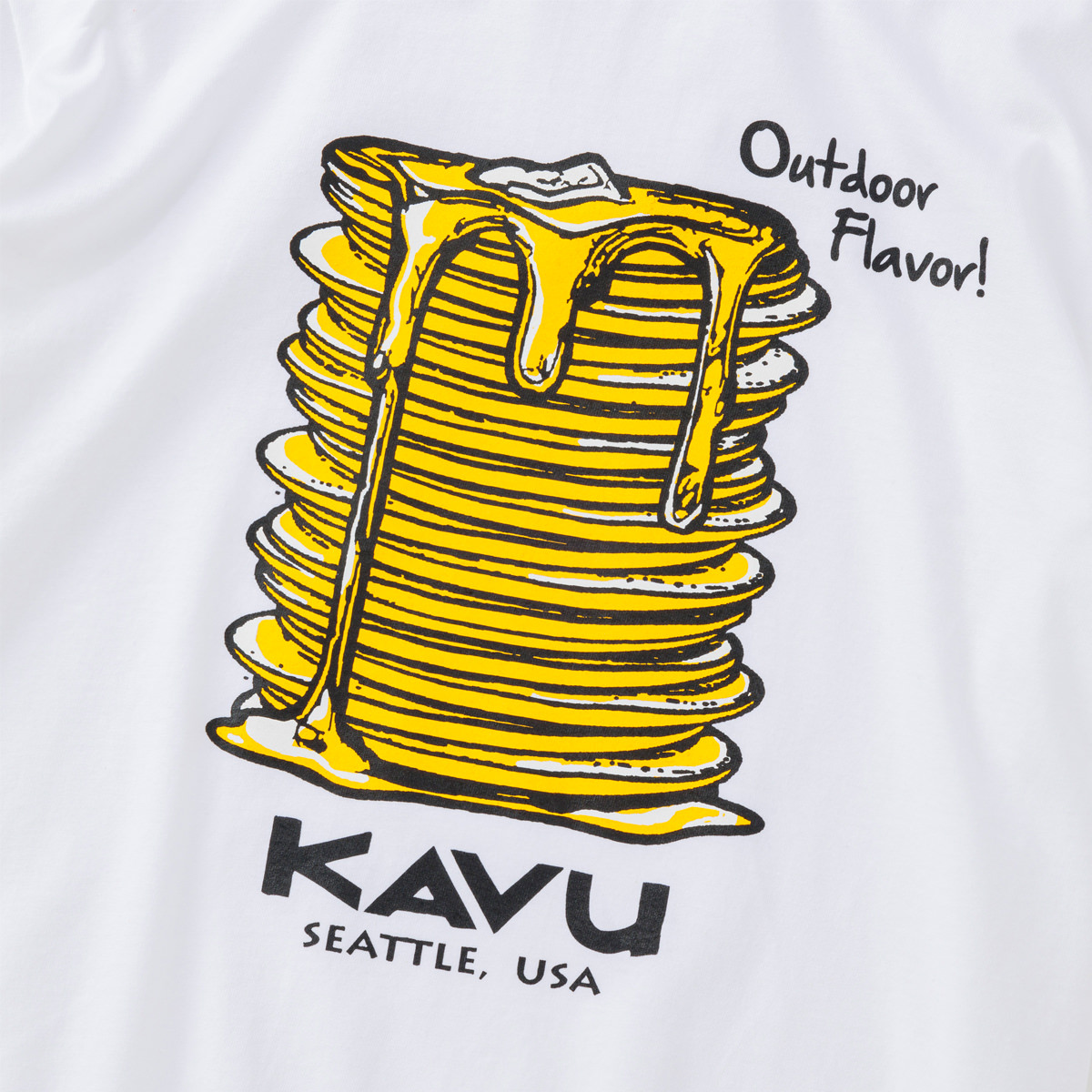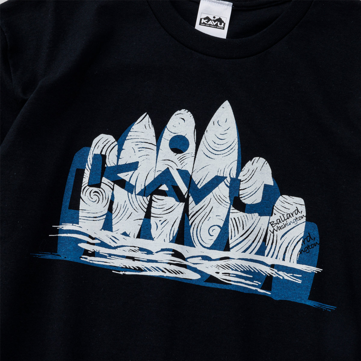 毎シーズン展開しているハンドプリントのシリーズですが、国内で1点1点手刷りで作成されています。 プリントに使用するインクもUSAから取り寄せたものを使用しています。 シンプルなKAVU ロゴを2版でプリントしています。