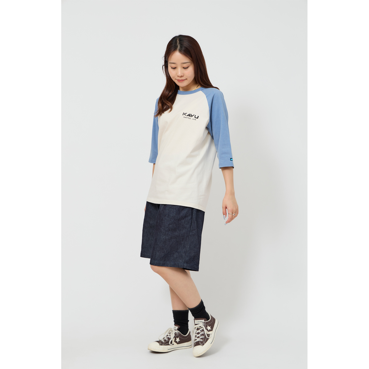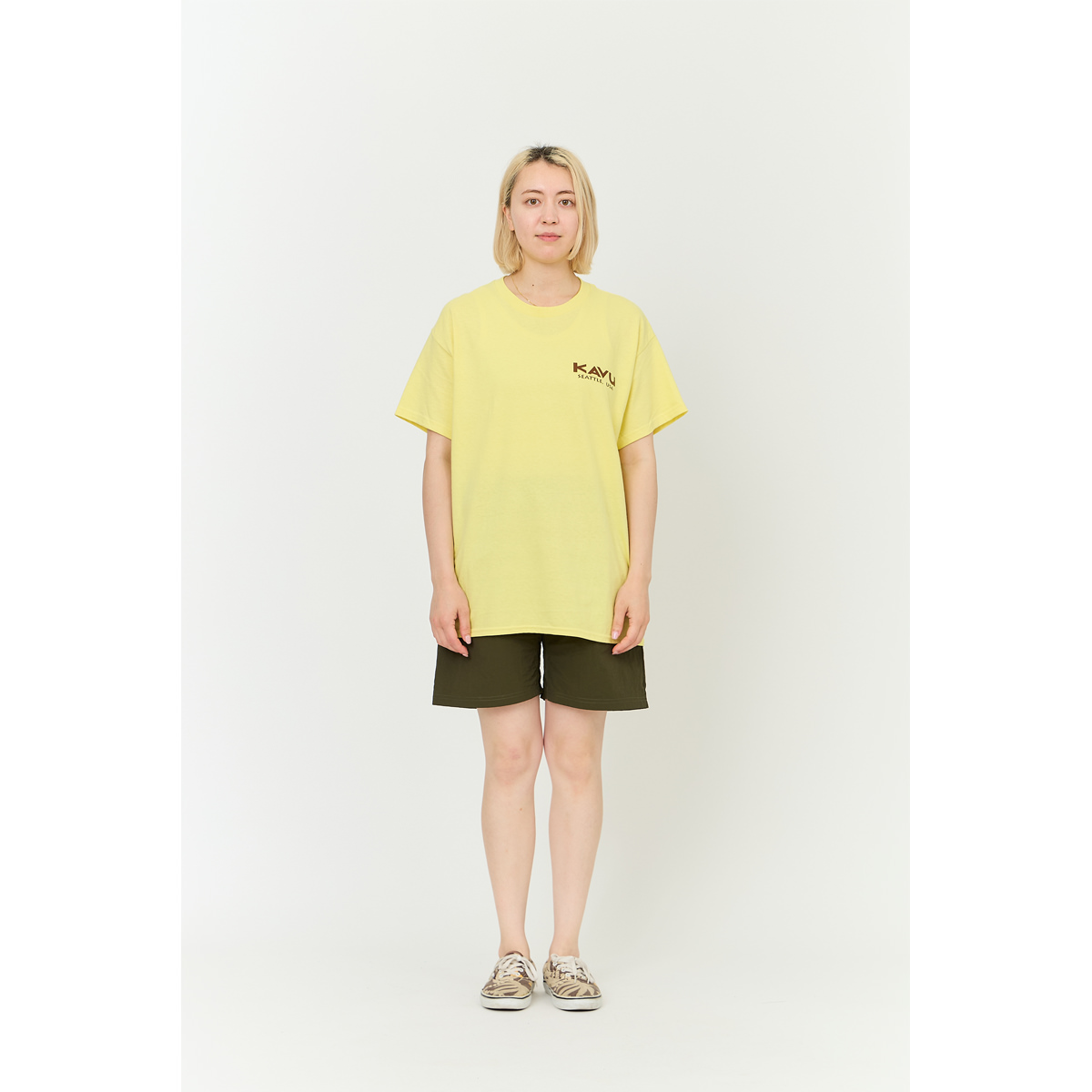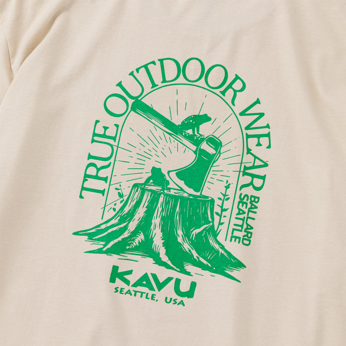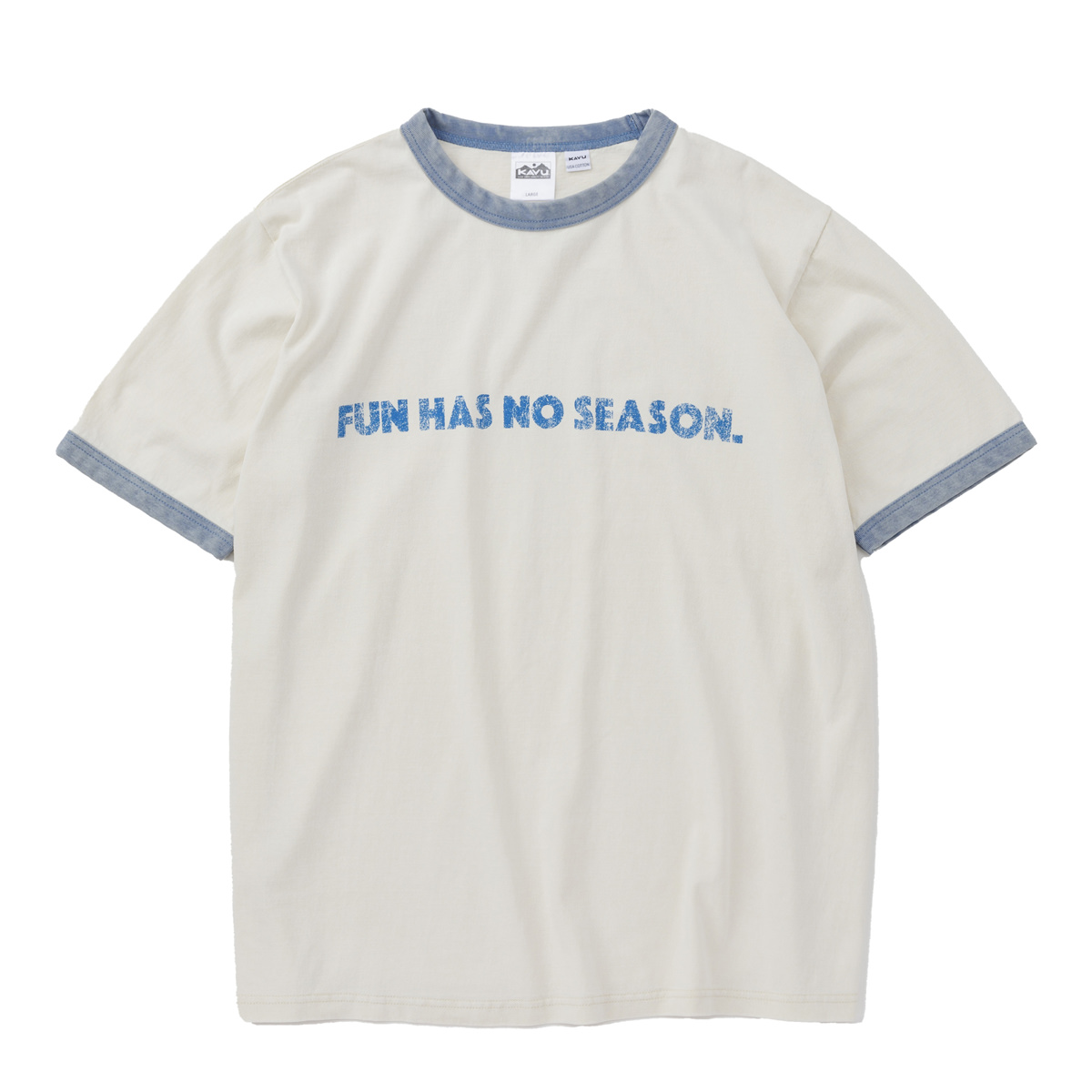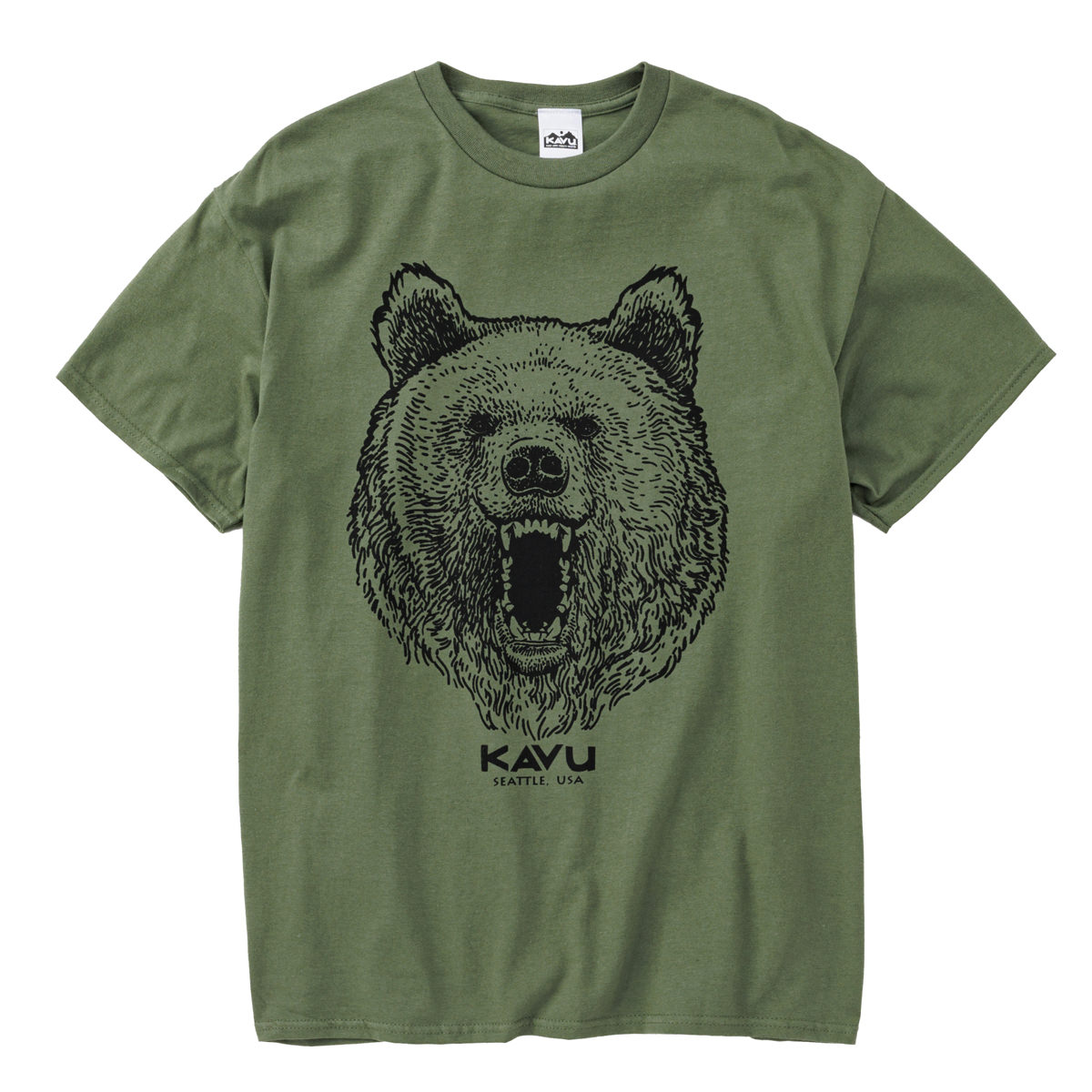 毎シーズン展開しているハンドプリントのシリーズですが、国内で1点1点手刷りで作成されています。 プリントに使用するインクもUSAから取り寄せたものを使用しています。 シンプルなKAVU ロゴを2版でプリントしています。