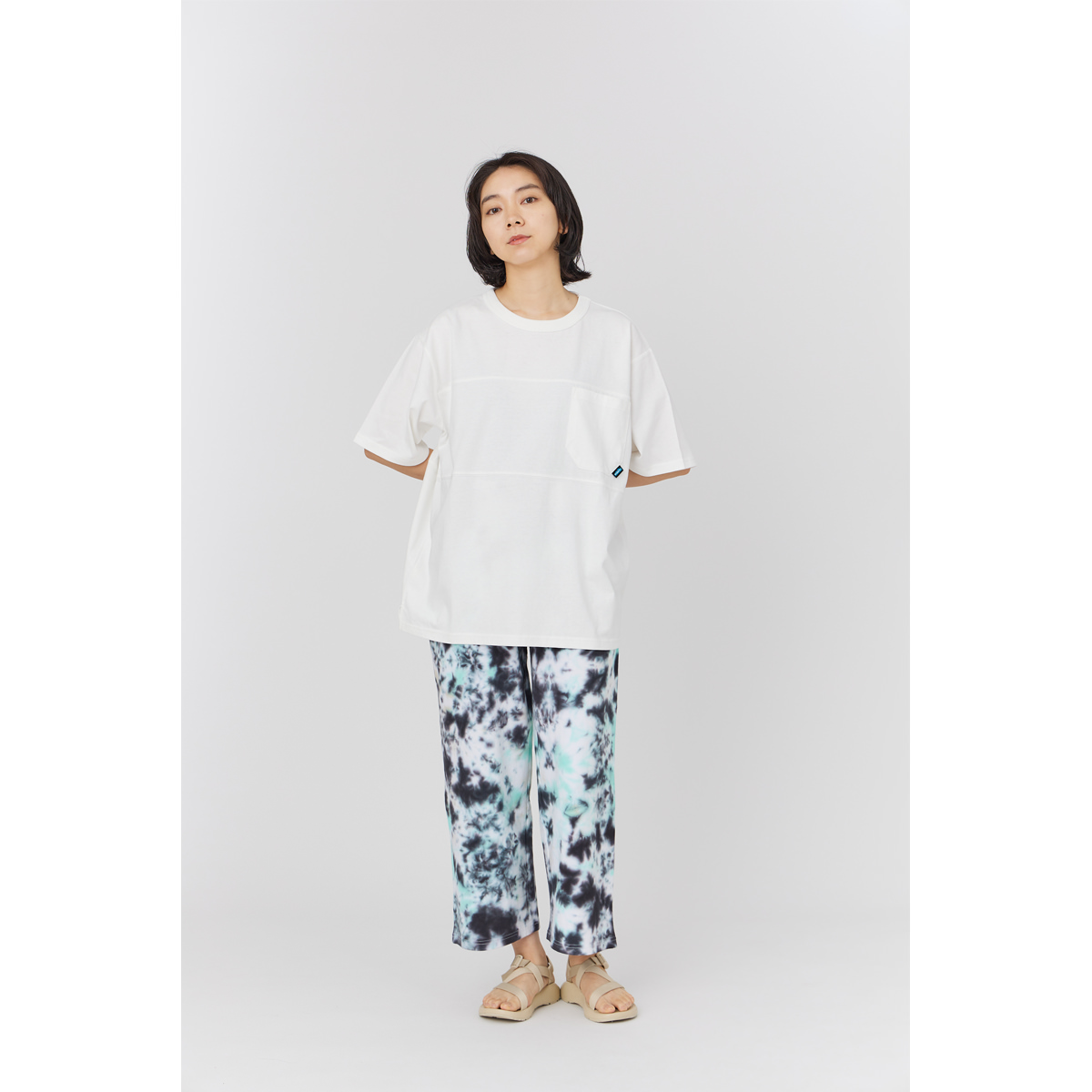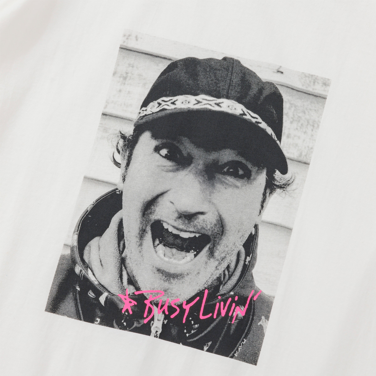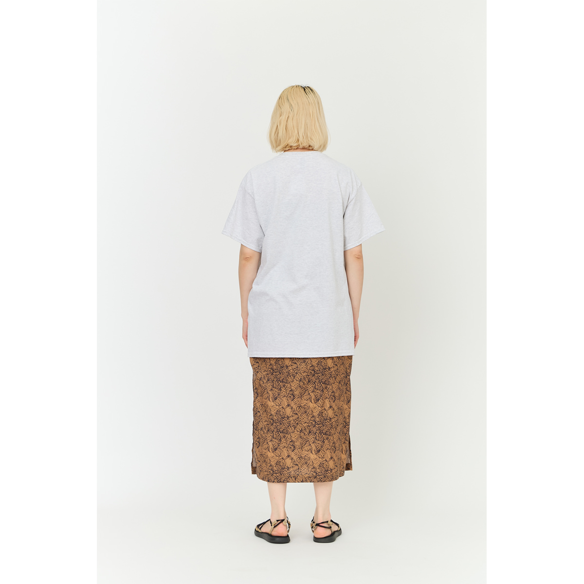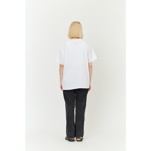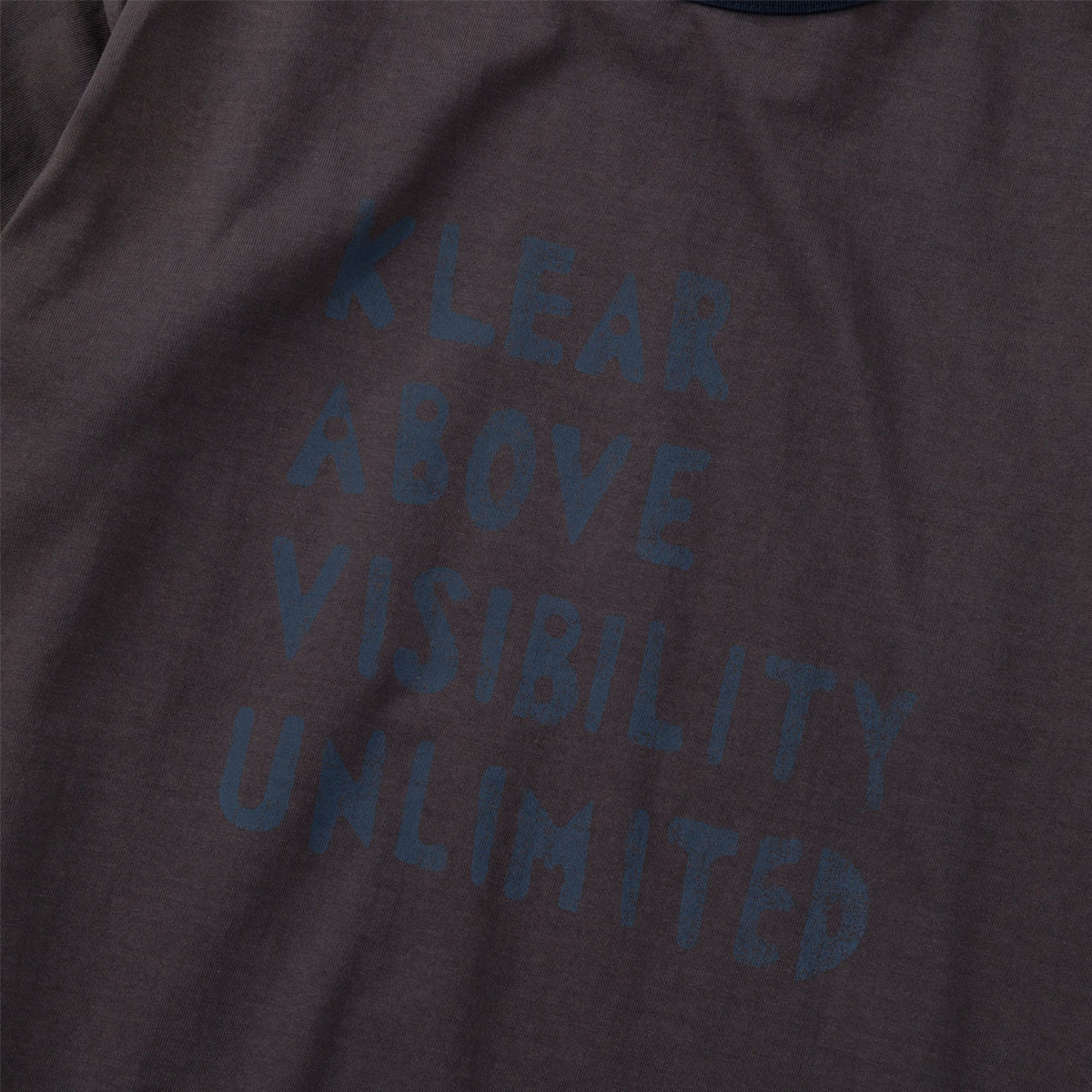 Used 加工 16/- の糸でボディを作成したボディに特殊なブリーチ加工を施しています。 プリントの版も最初からひび割れた版で作成し着古したような風合いに仕上げています。
