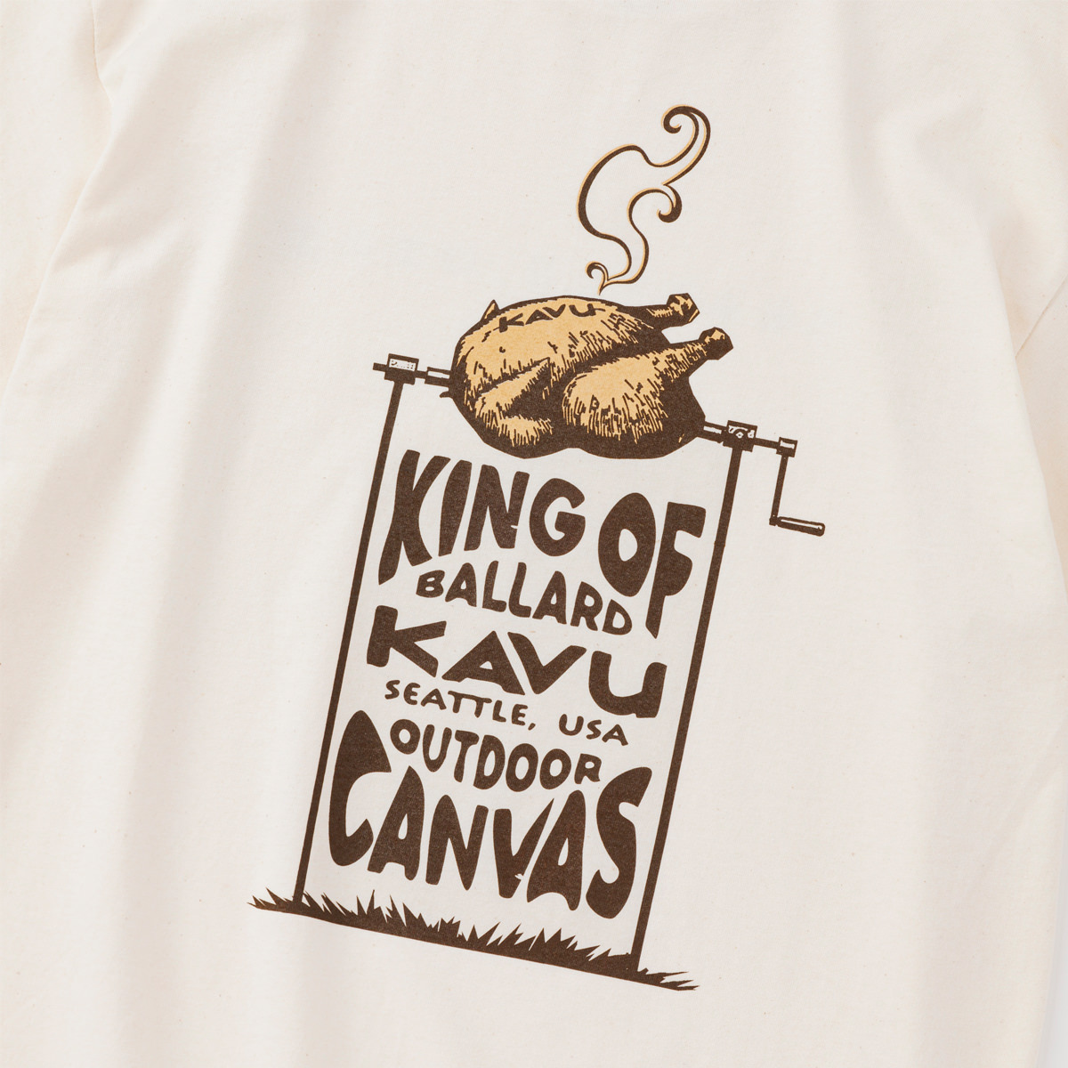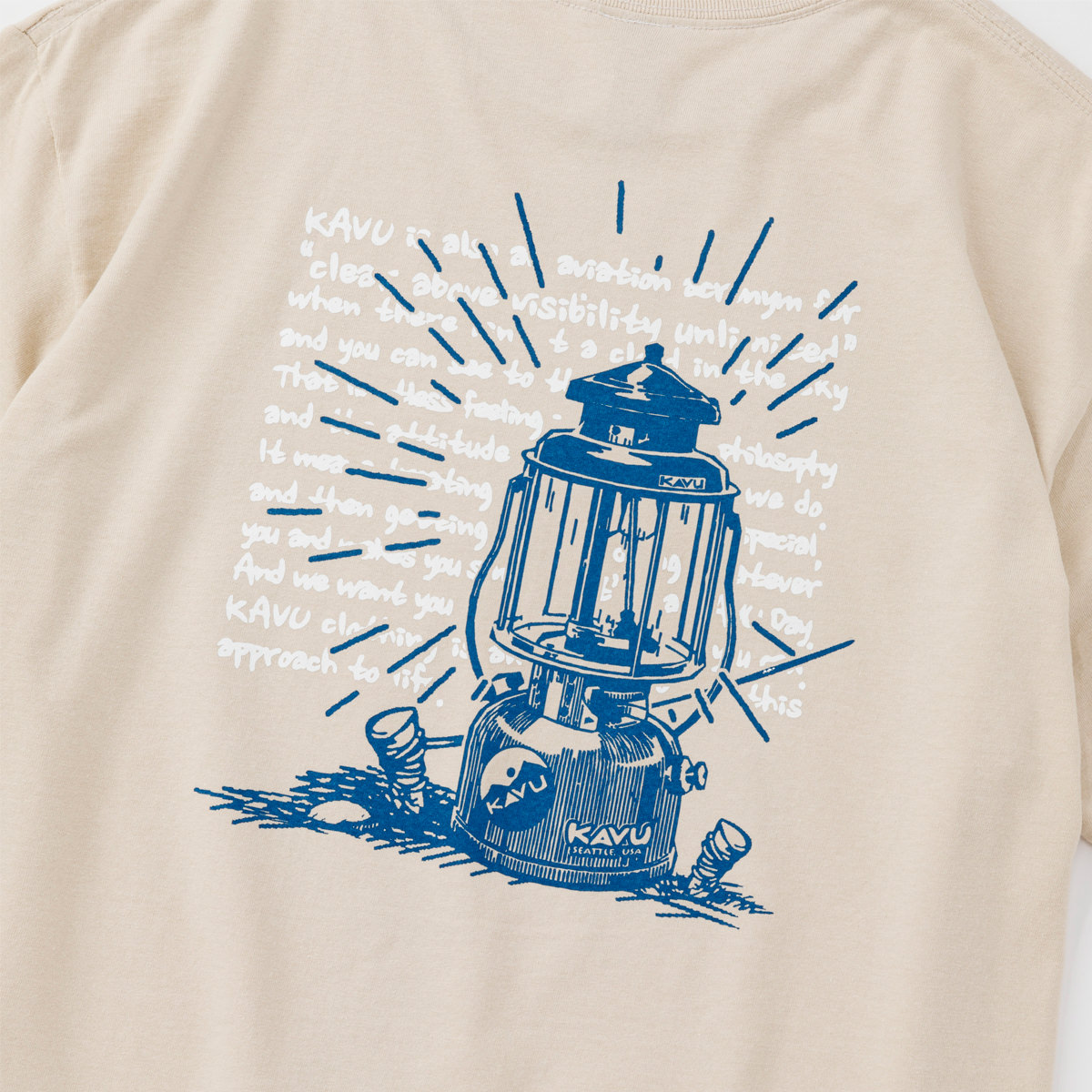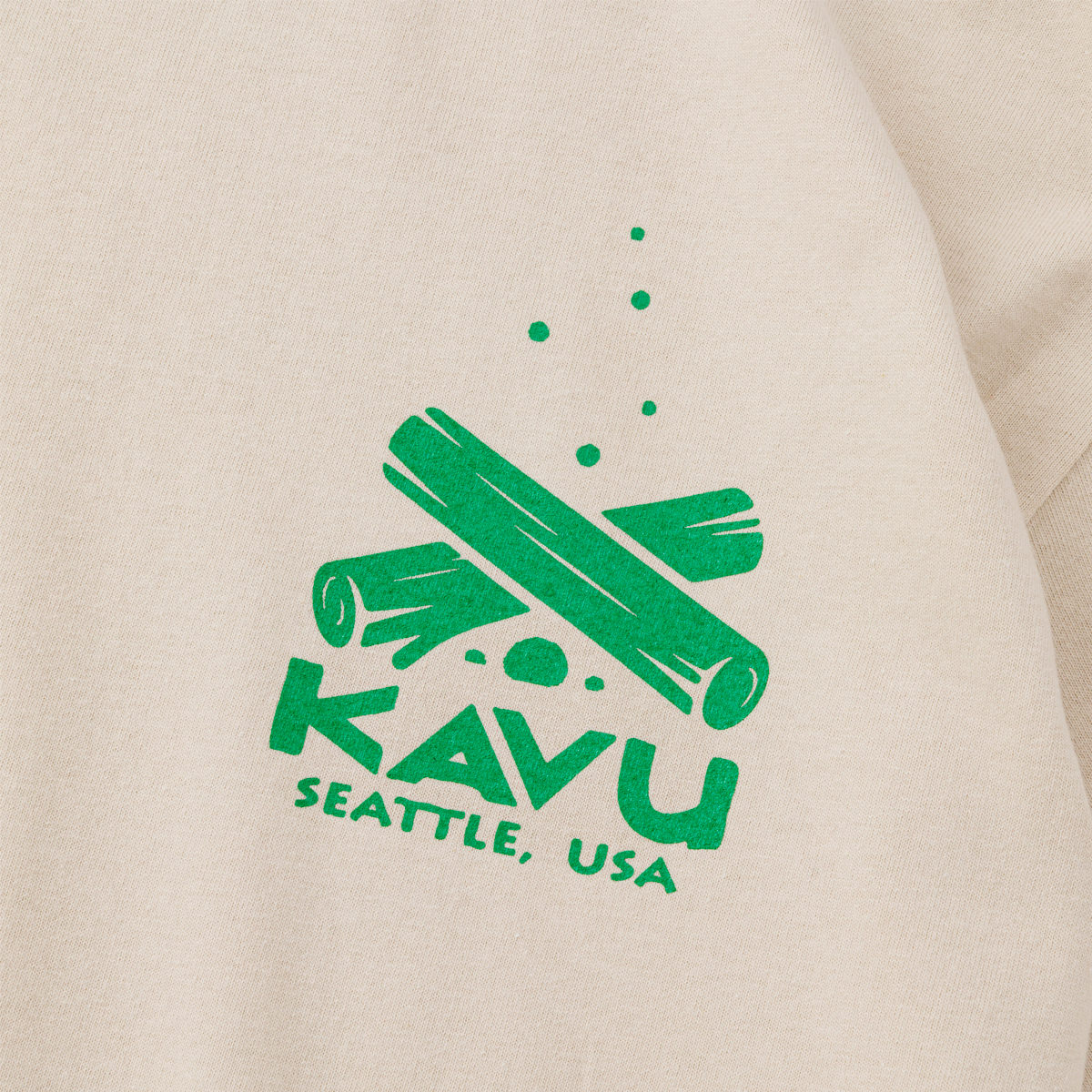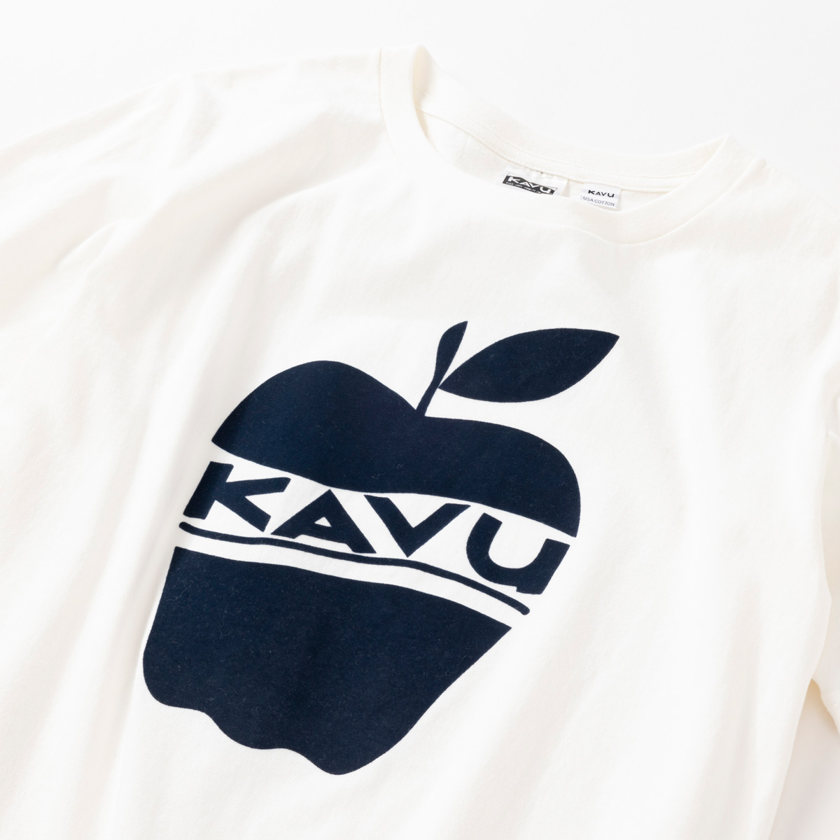 毎シーズン展開しているハンドプリントのシリーズですが、国内で1点1点手刷りで作成されています。 プリントに使用するインクもUSAから取り寄せたものを使用しています。 90年代にKAVU社がノベルティ用に作ったマッチにプリントされていた、KAVUを代表するロゴです。