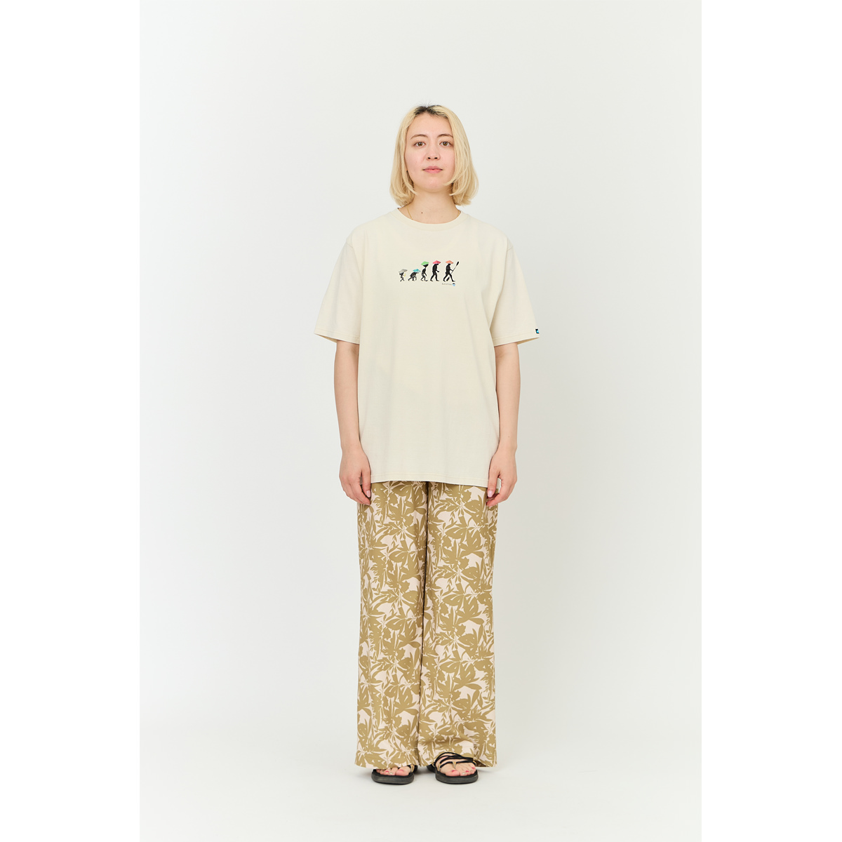 毎シーズン展開しているハンドプリントのシリーズですが、国内で1点1点手刷りで作成されています。 プリントに使用するインクもUSAから取り寄せたものを使用しています。 版画のようなデザインが好評いただいているサーモンが水性の染み込みでプリントされています。