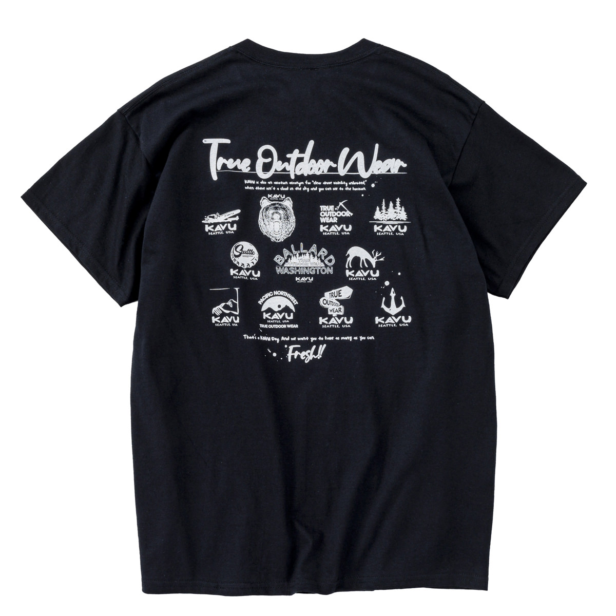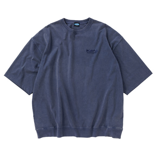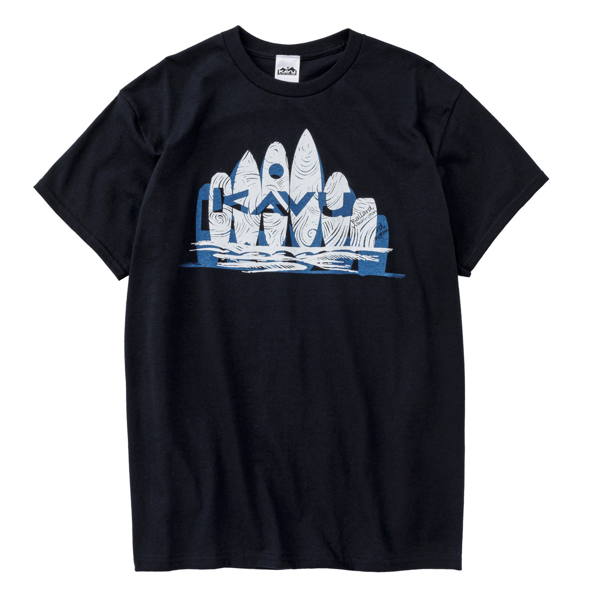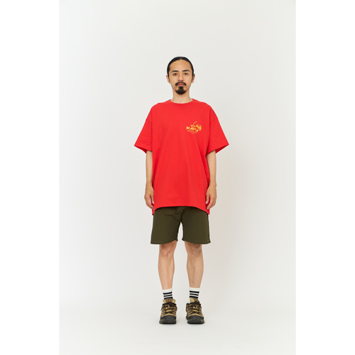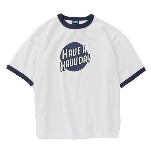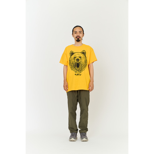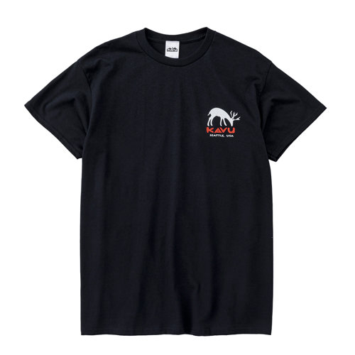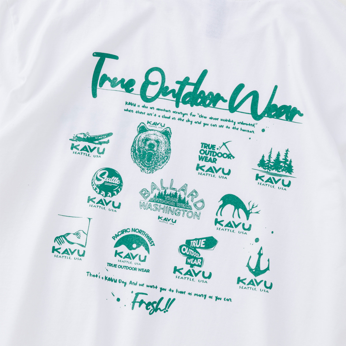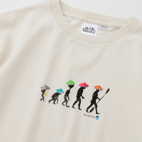 毎シーズン展開しているハンドプリントのシリーズですが、国内で1点1点手刷りで作成されています。 プリントに使用するインクもUSAから取り寄せたものを使用しています。 バックプリントに様々なKAVUロゴを使った、イベント用に作られたようなT-shirtsです。