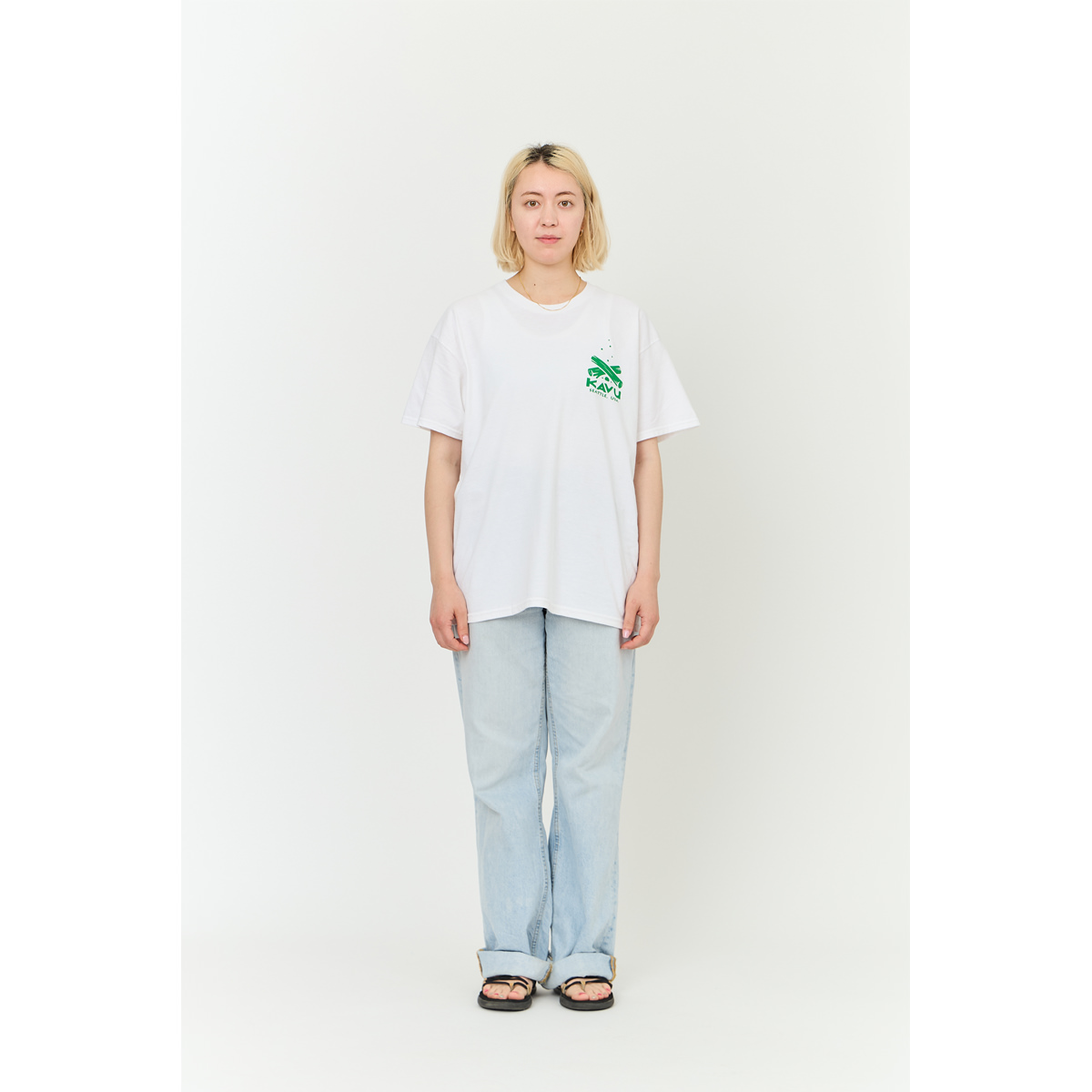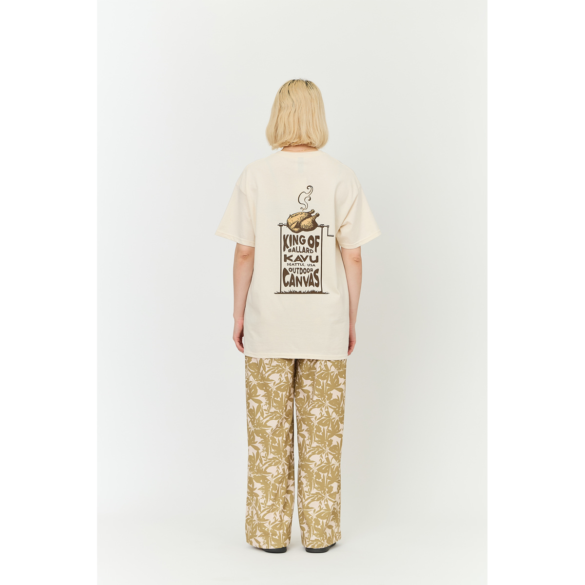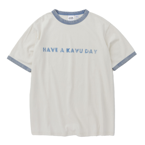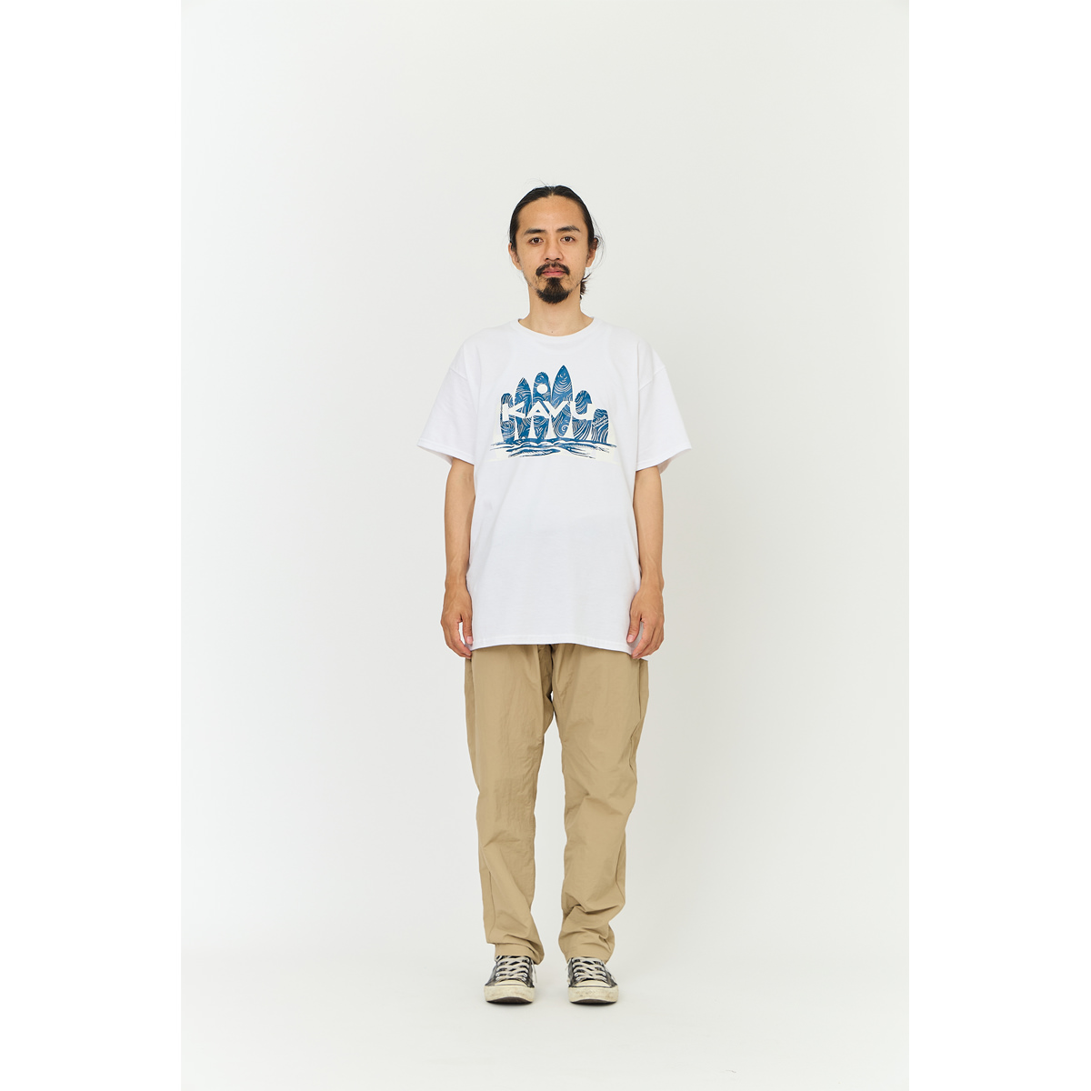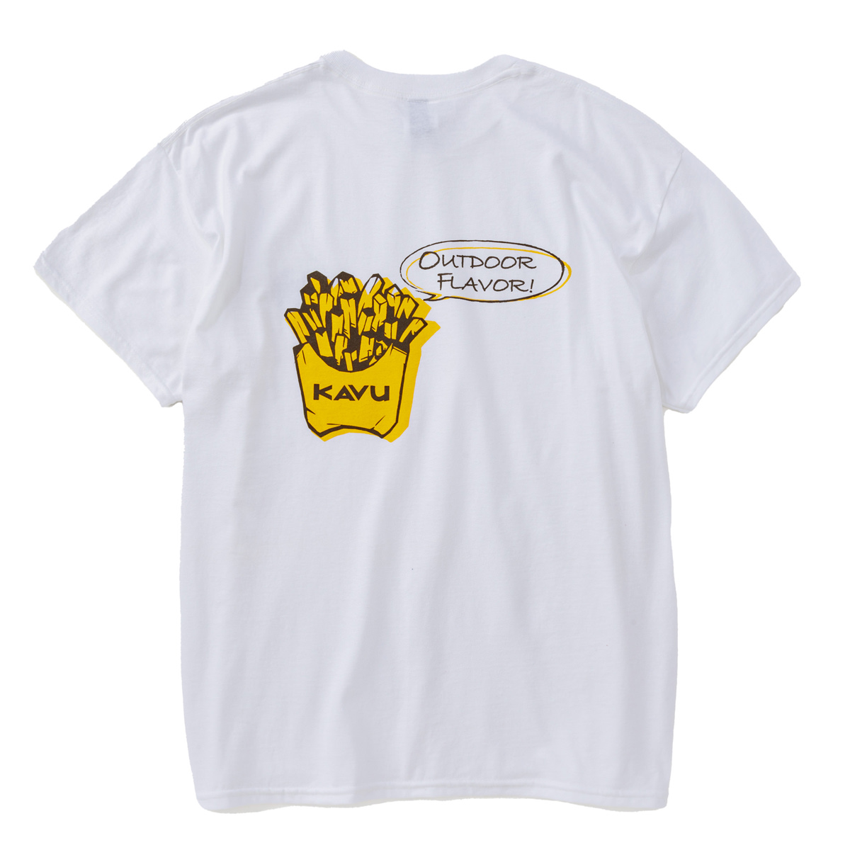 毎シーズン展開しているハンドプリントのシリーズですが、国内で1点1点手刷りで作成されています。 プリントに使用するインクもUSAから取り寄せたものを使用しています。 バックプリントに様々なKAVUロゴを使った、イベント用に作られたようなT-shirtsです。