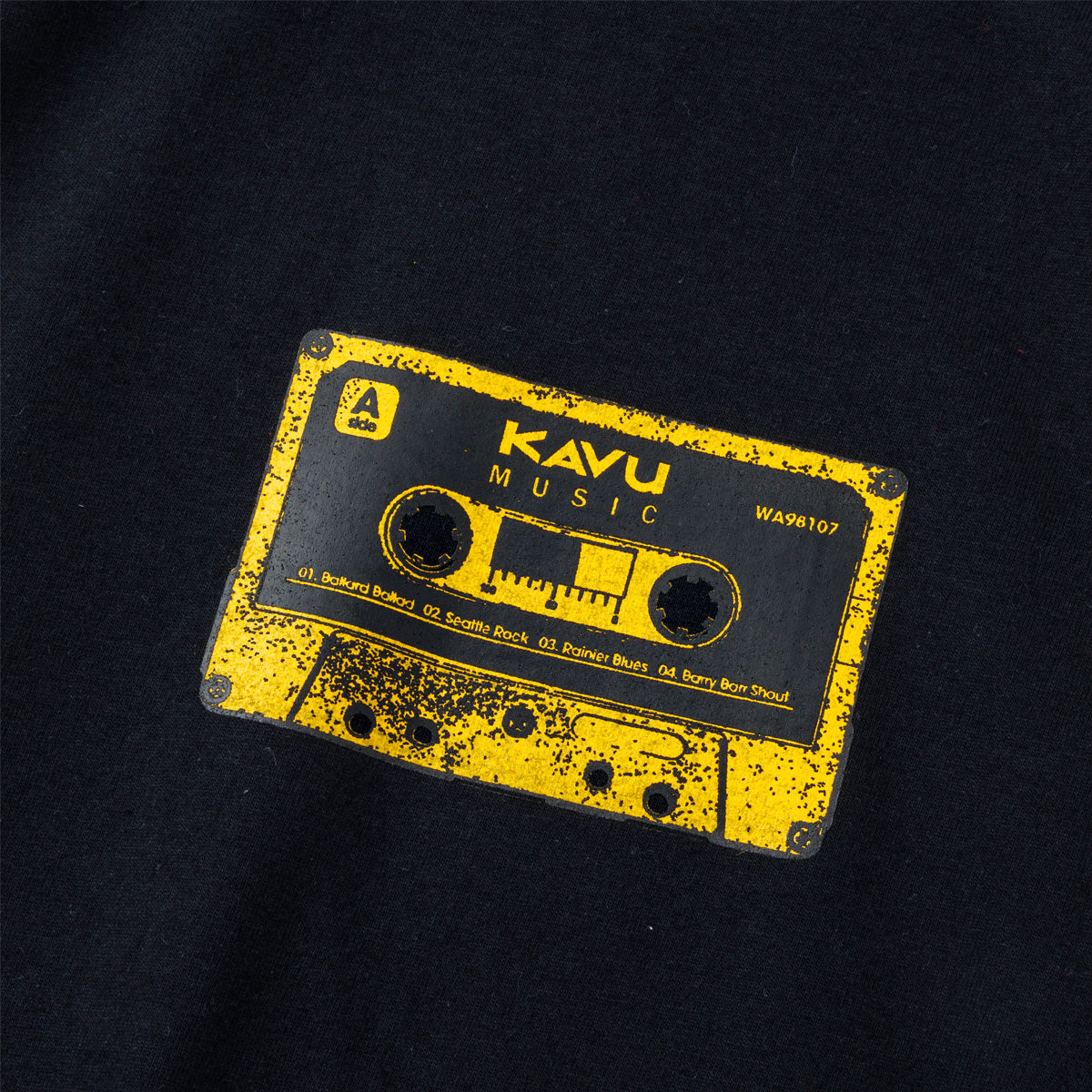 毎シーズン展開しているハンドプリントのシリーズですが、国内で1点1点手刷りで作成されています。 プリントに使用するインクもUSAから取り寄せたものを使用しています。 懐かしのカセットテープをモチーフにしたT-shirtsです。 プリントをよく見ると曲名が入っています。