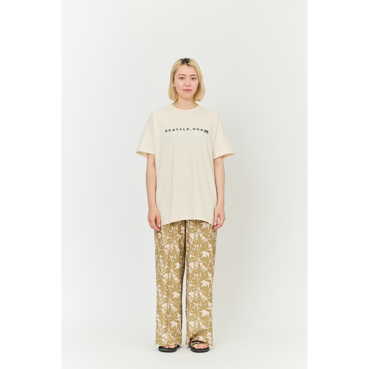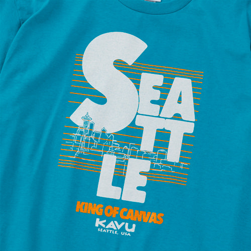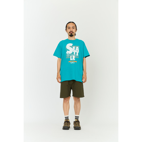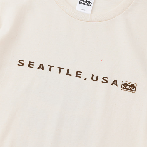 毎シーズン展開しているハンドプリントのシリーズですが、国内で1点1点手刷りで作成されています。 プリントに使用するインクもUSAから取り寄せたものを使用しています。 シアトルの街並みをモチーフにしたT-shirtsです。