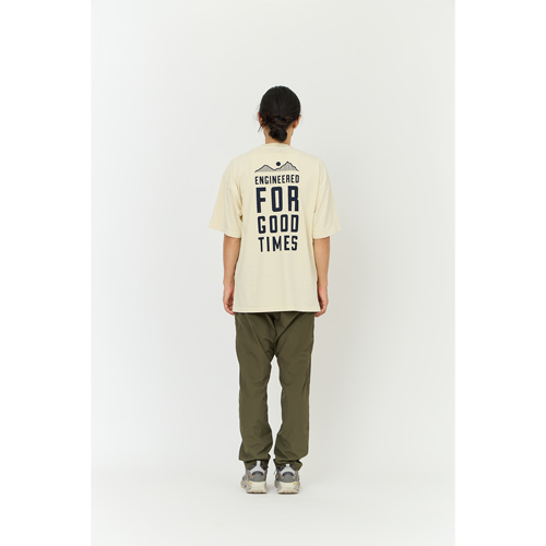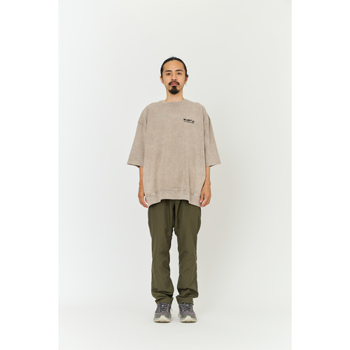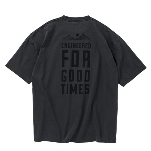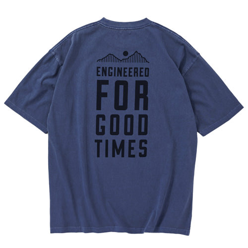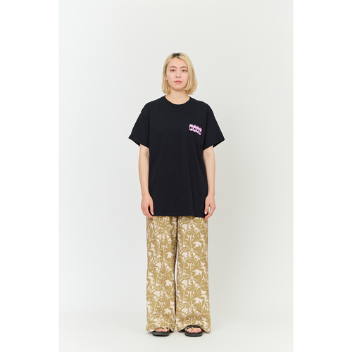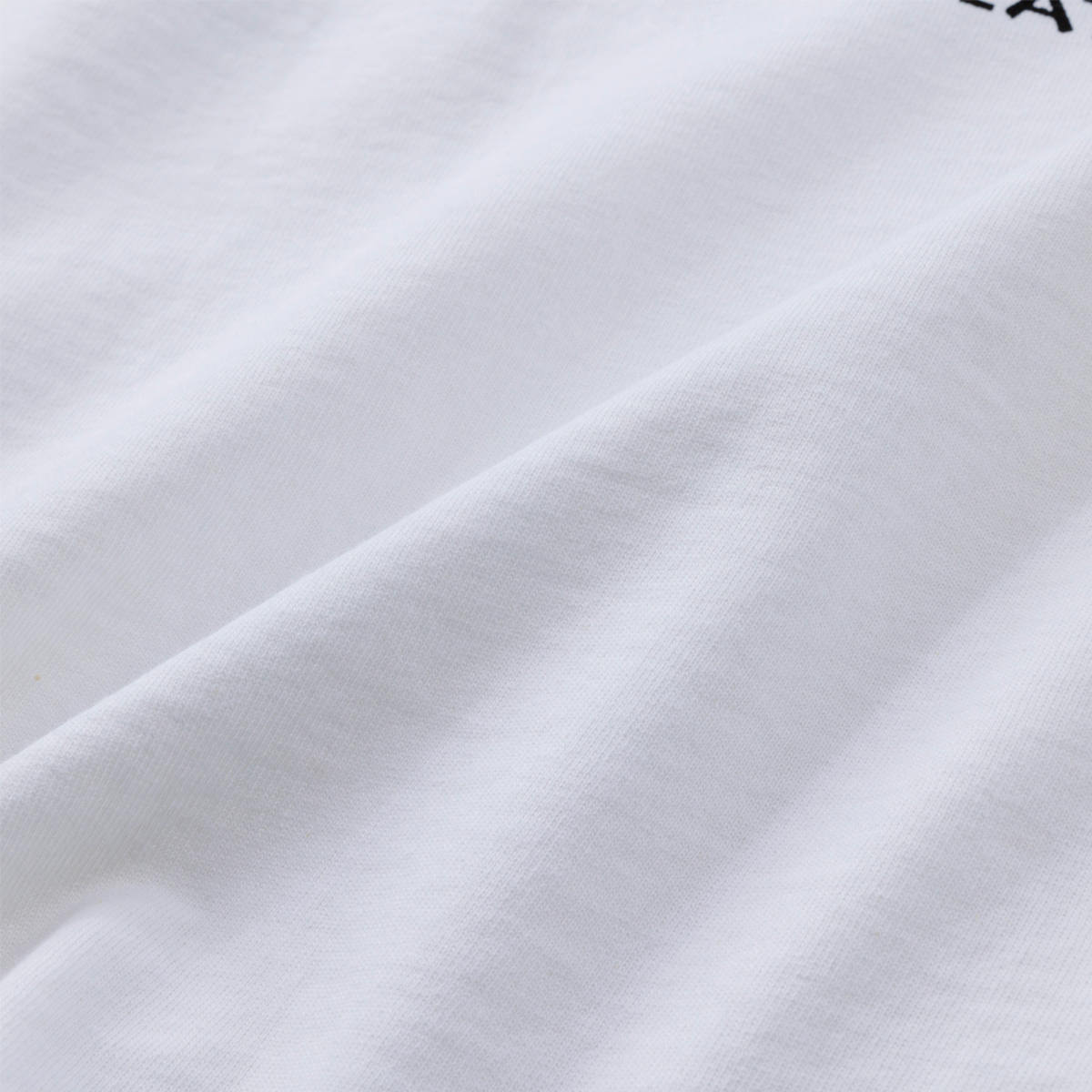 毎シーズン展開しているハンドプリントのシリーズですが、国内で1点1点手刷りで作成されています。 プリントに使用するインクもUSAから取り寄せたものを使用しています。 バナー用に作った大きなロゴが全面にプリントされたT-shirtsです。 版が大きすぎるためXLのみの展開です。 このサイズの版を手刷りできる職人は少なくなり希少な製品です。 職人の技術が詰め込まれたT-shirtsです。