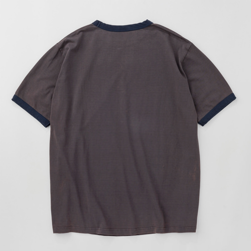 Used 加工 16/- の糸でボディを作成したボディに特殊なブリーチ加工を施したリンガーTeeです。 プリントの版も最初からひび割れた版で作成し着古したような風合いに仕上げています。