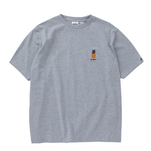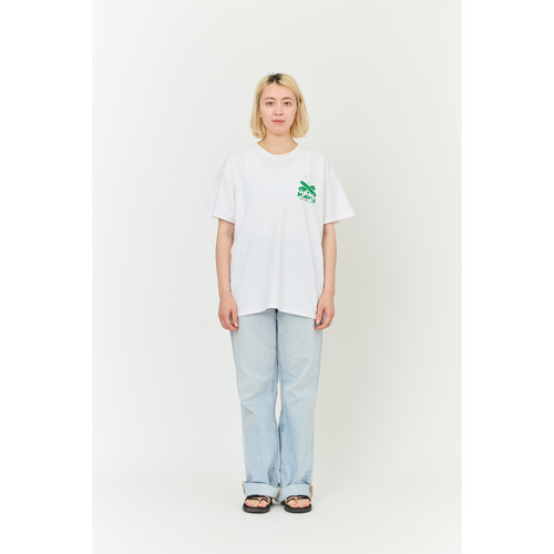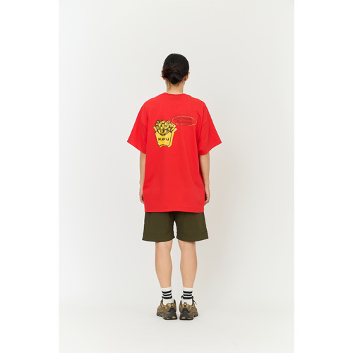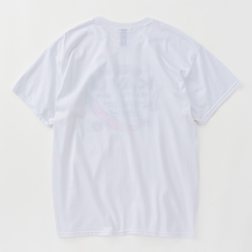 毎シーズン展開しているハンドプリントのシリーズですが、国内で1点1点手刷りで作成されています。 プリントに使用するインクもUSAから取り寄せたものを使用しています。 左胸にシェイクとバーガー、背中にポテトがプリントされたT-shirtsです。