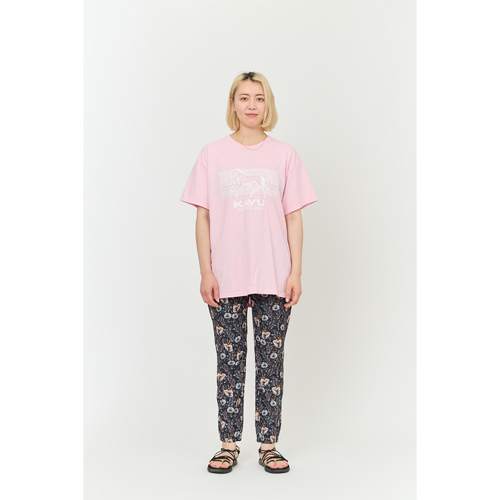 KAVU カブー ウィメンズ サンブラス はポップなデザインのオーバーオールです。 ゆったりしたサイズ感とクイックドライストレッチ素材なので、思いっきり動いてもストレスフリーなオールインワンサロペット。速乾性もあり汗をかいてもさらりとした着心地です。US規格ですがサイズを選べば、問題なく着用できるサイズ感です。シンプルなのでタウンでもアウトドアでも映える、ヘビロテ間違いなしの1枚です。